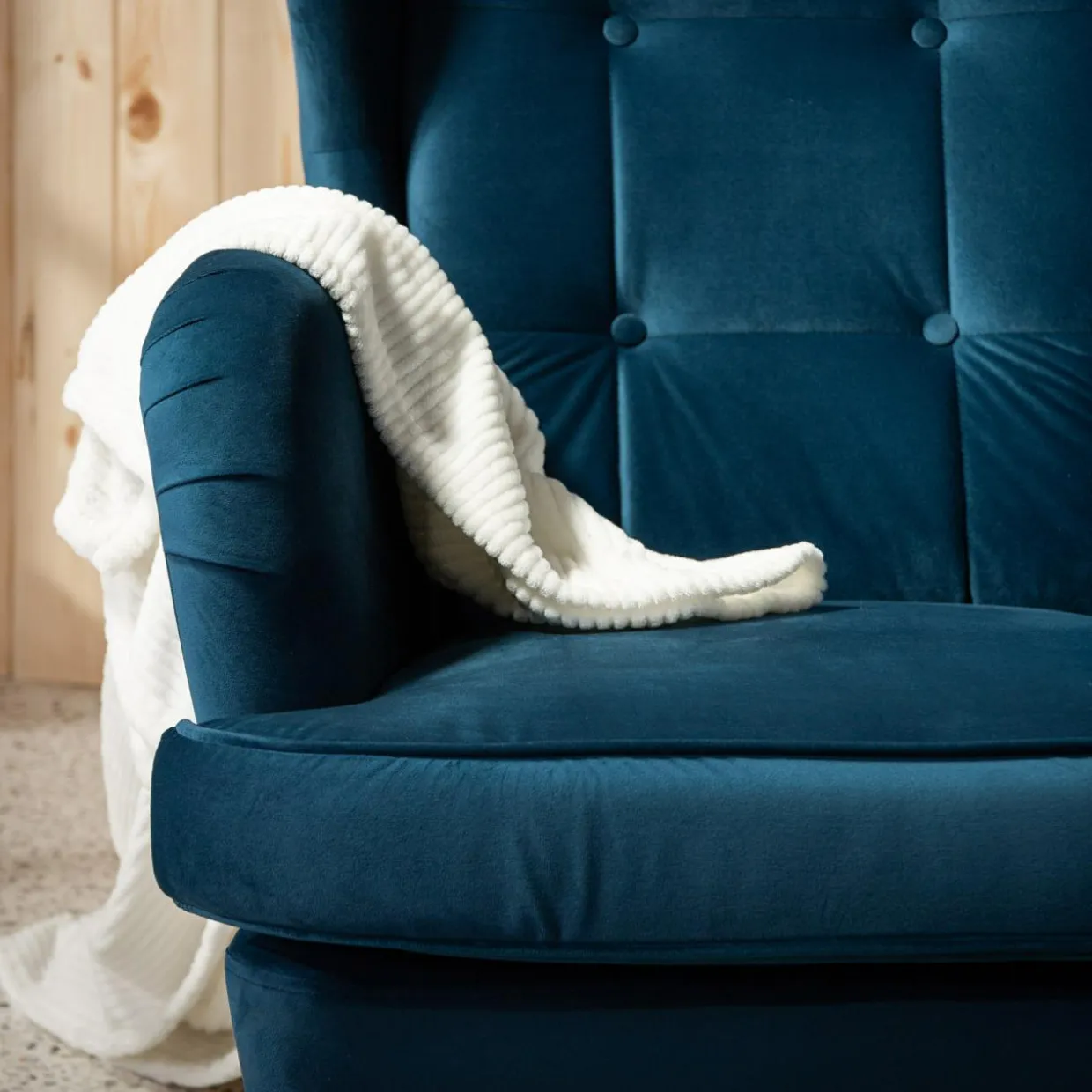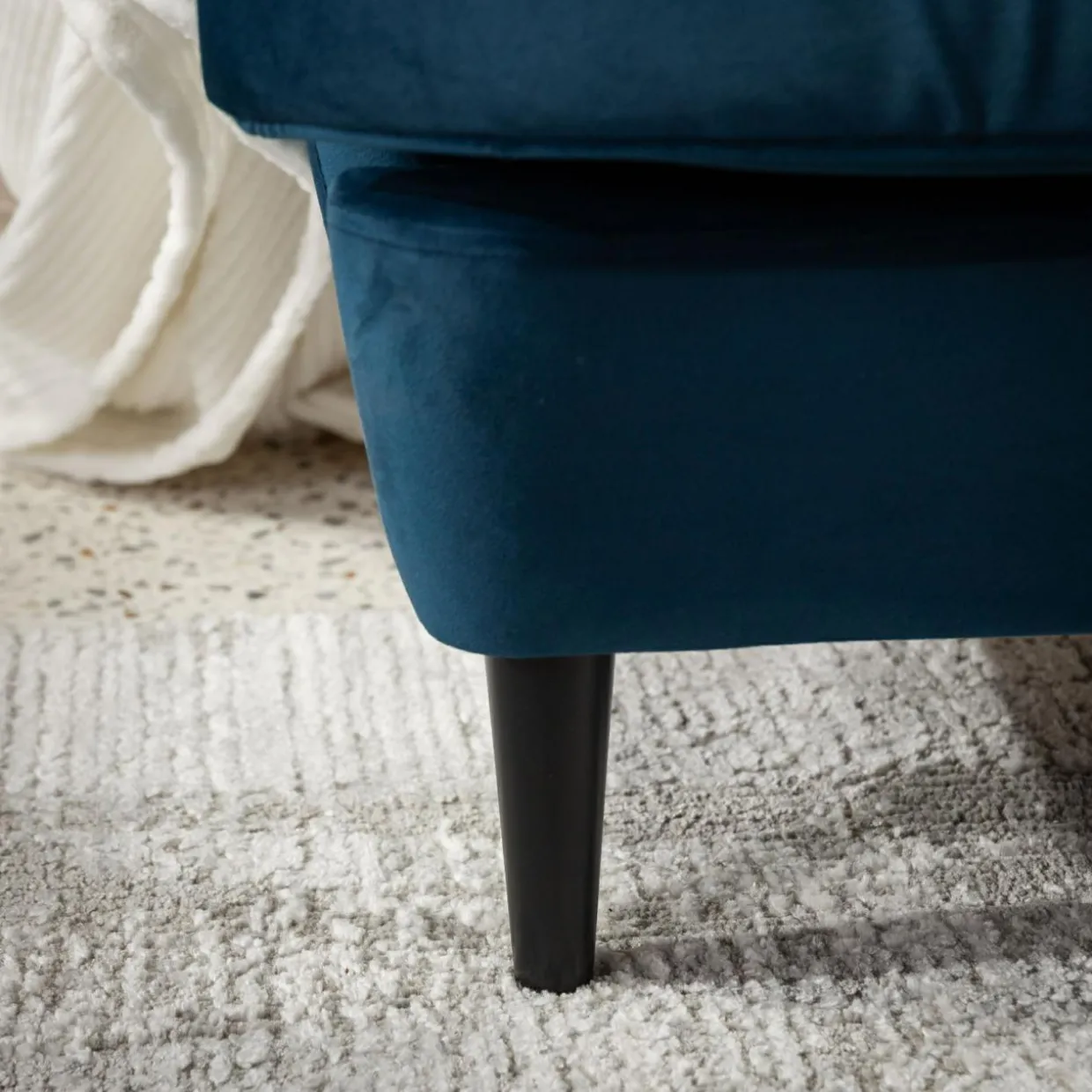 - Drewniane nóżki i welurowa tkanina nadadzą wnętrzu elegancji.