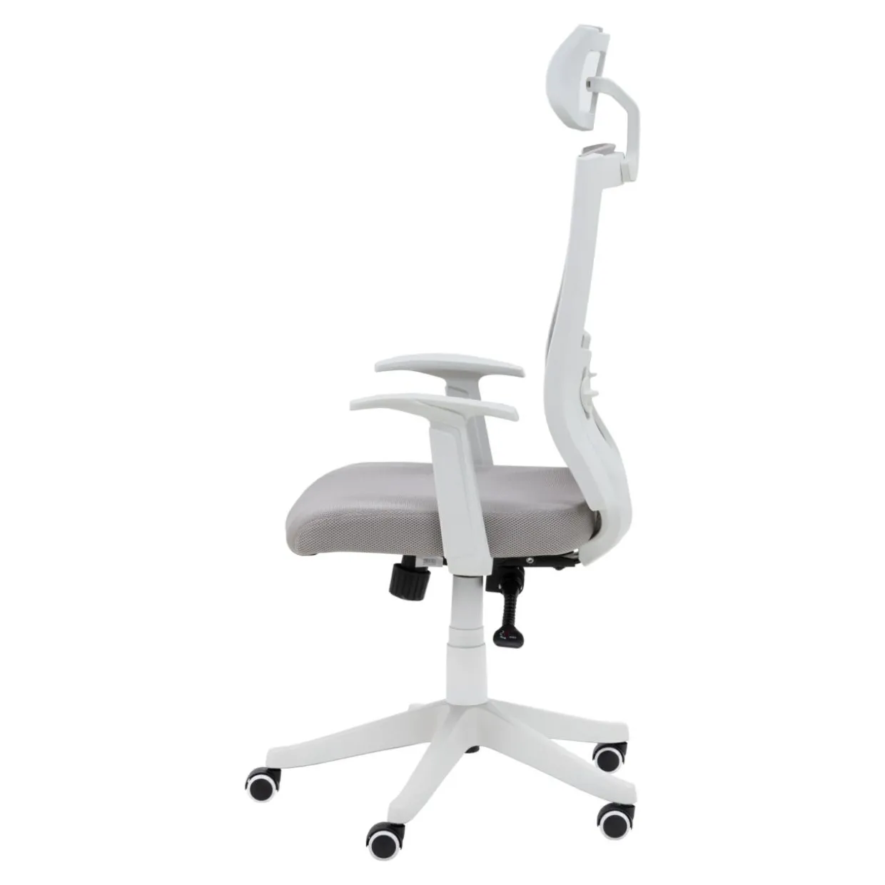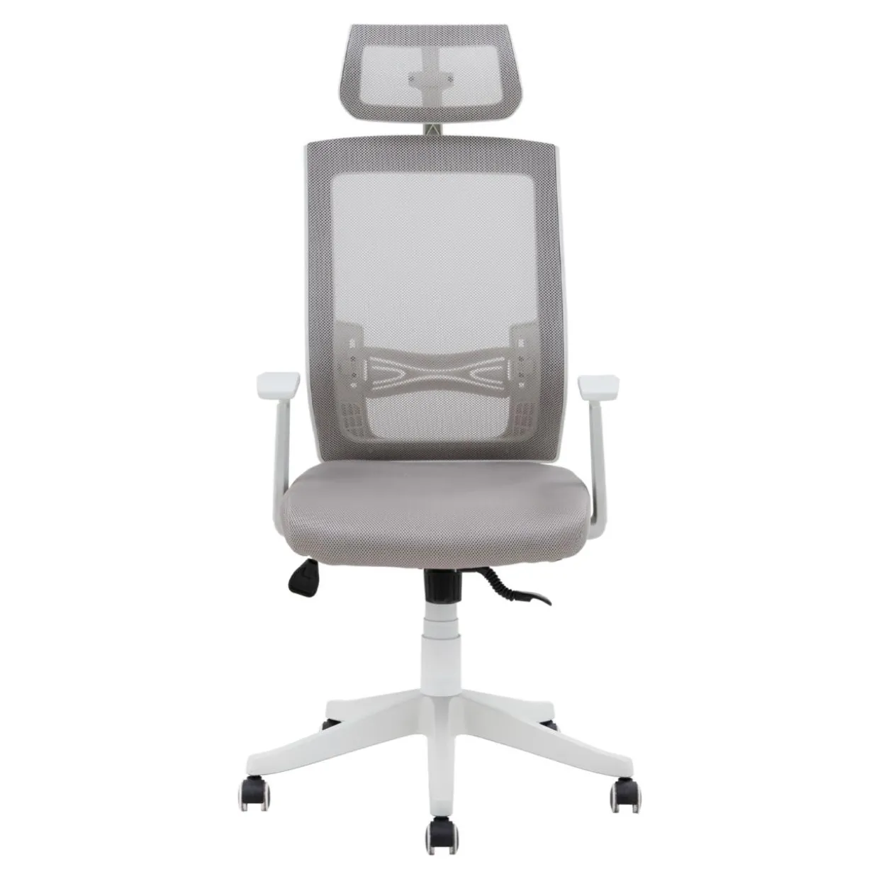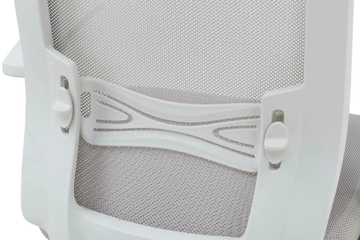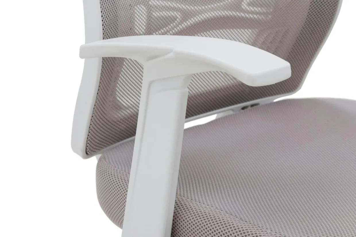 Siatka mesh zapewnia cyrkulację powietrza między powierzchnią pleców a oparciem. Fotel wyposażono w podłokietniki, o które możesz opierać ręce.