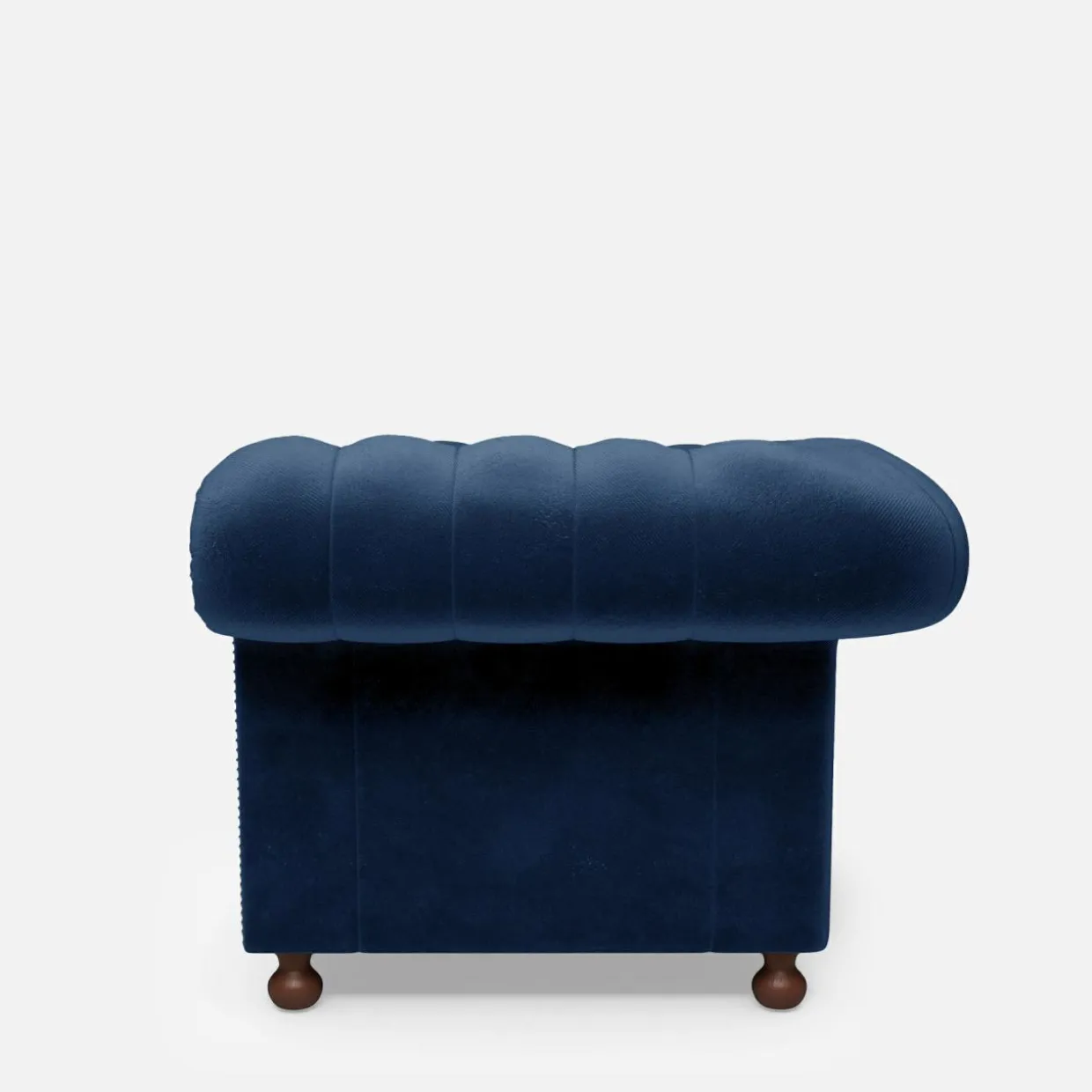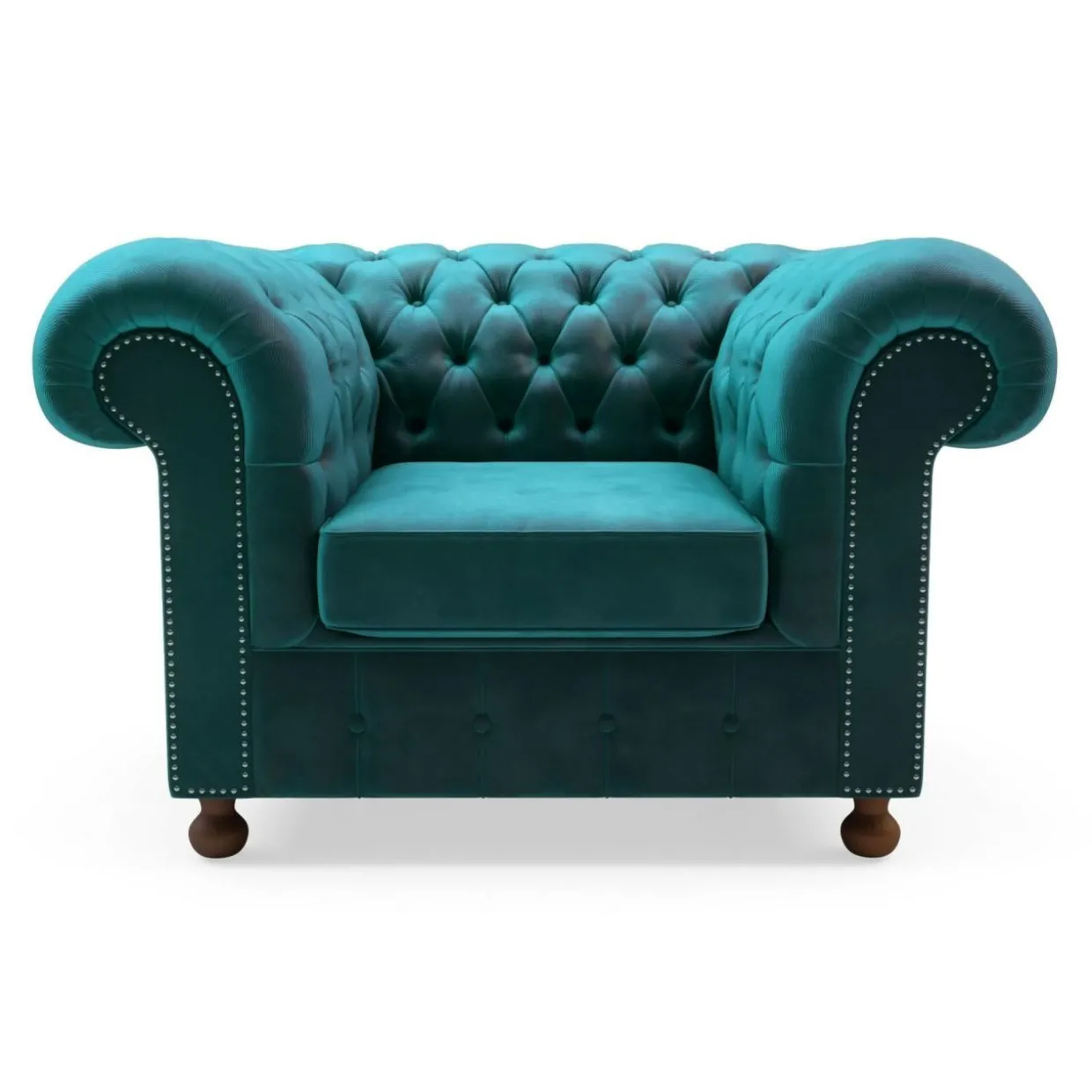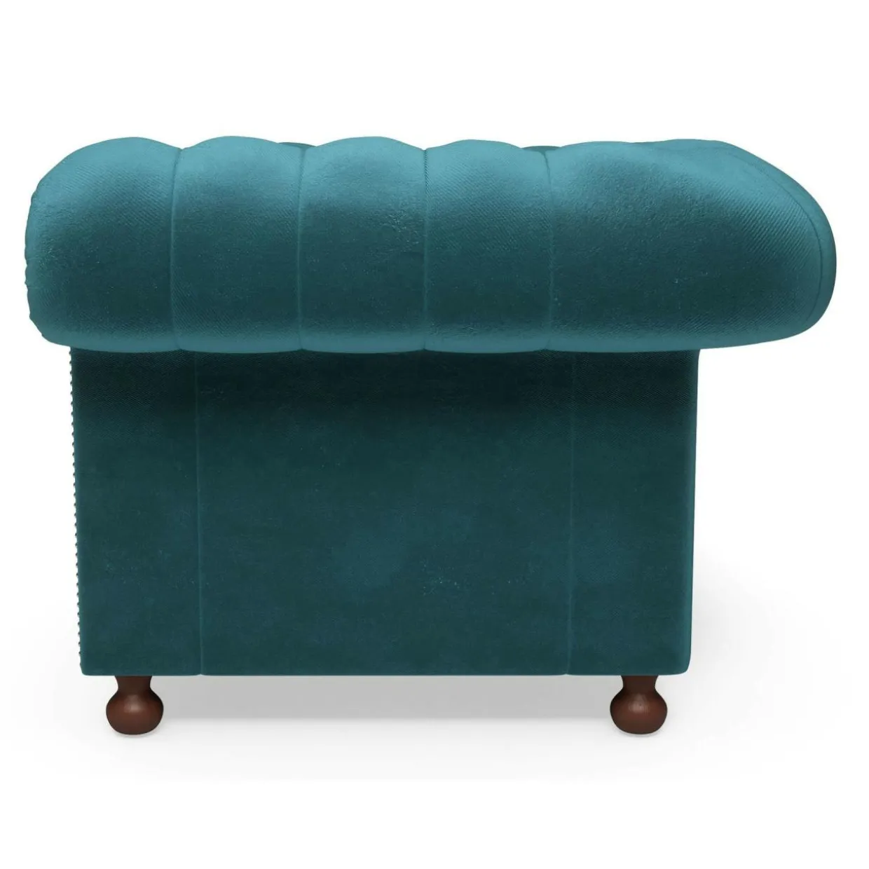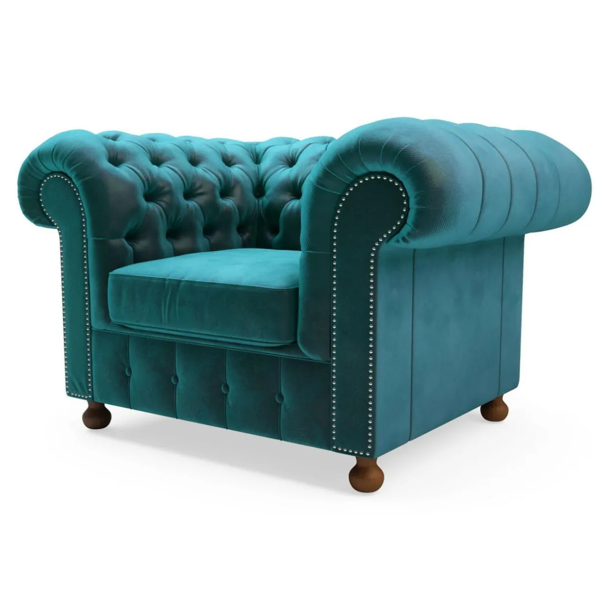 - Wewnętrzną część oparcia i wywiniętych na zewnątrz podłokietników pokryto pikowaniem oraz ozdobnymi guzikami w kolorze tapicerki.