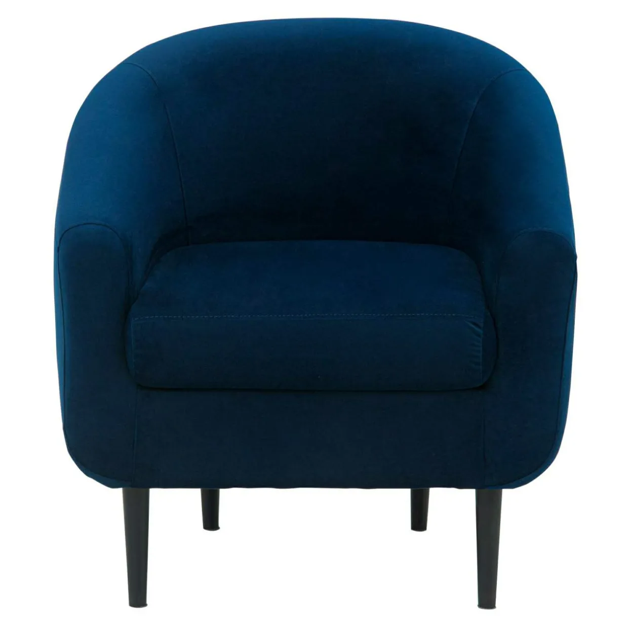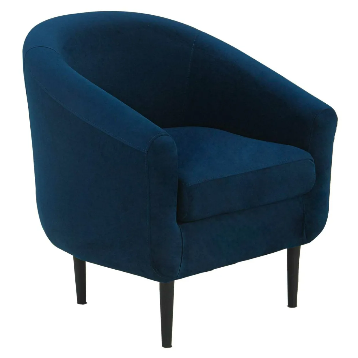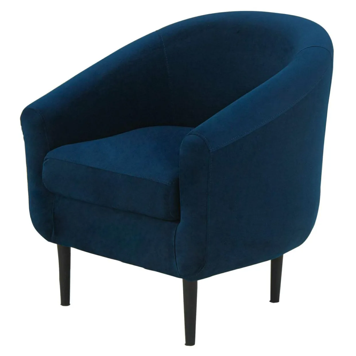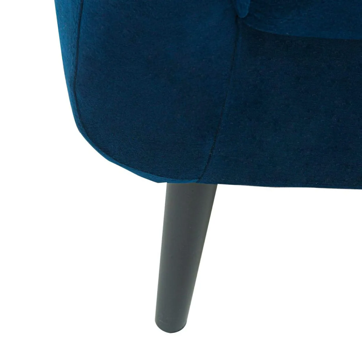 Fotel MILTON pokryto welurową tkaniną w pięknym odcieniu navy blue, dzięki czemu przykuwa uwagę i pięknie skomponuje się z ciemnym umeblowaniem pomieszczenia.