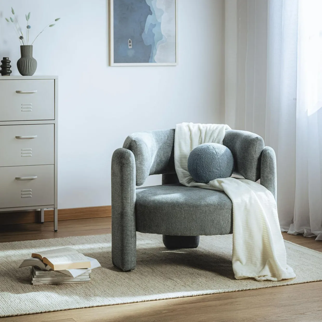 Fotel wypoczynkowy MAFELE to idealne połączenie nowoczesnego stylu oraz komfortu. Elegancka forma i uniwersalna kolorystyka sprawiają, że wpasuje się w różnorodne aranżacje wnętrz, dodając im przytulnego charakteru.