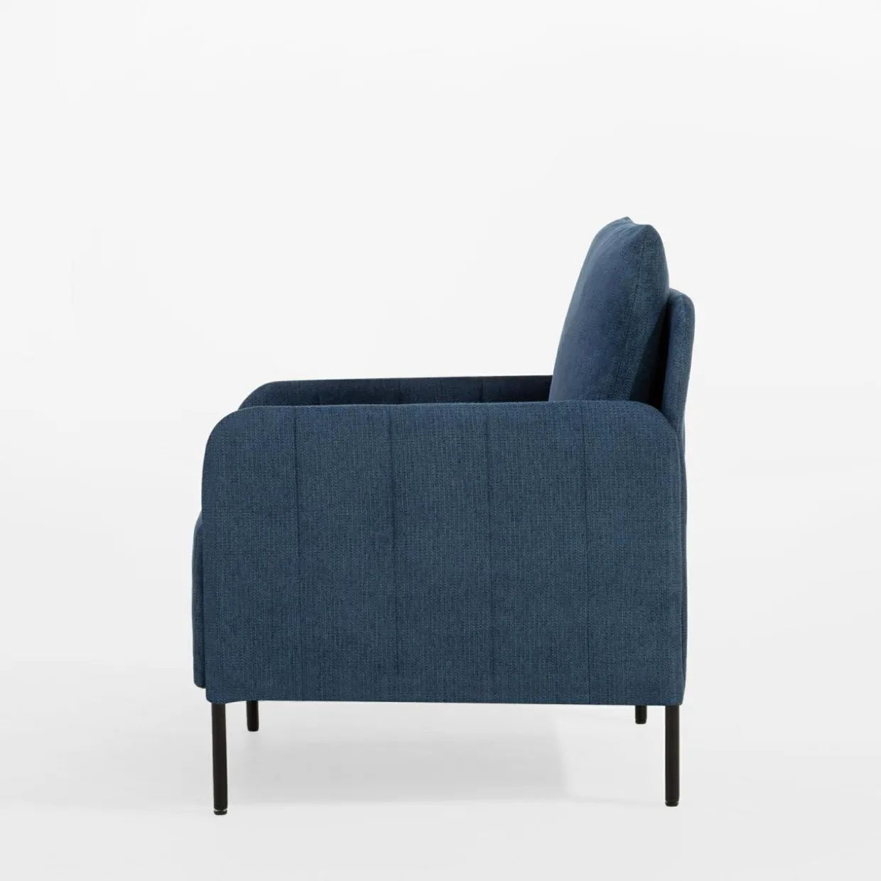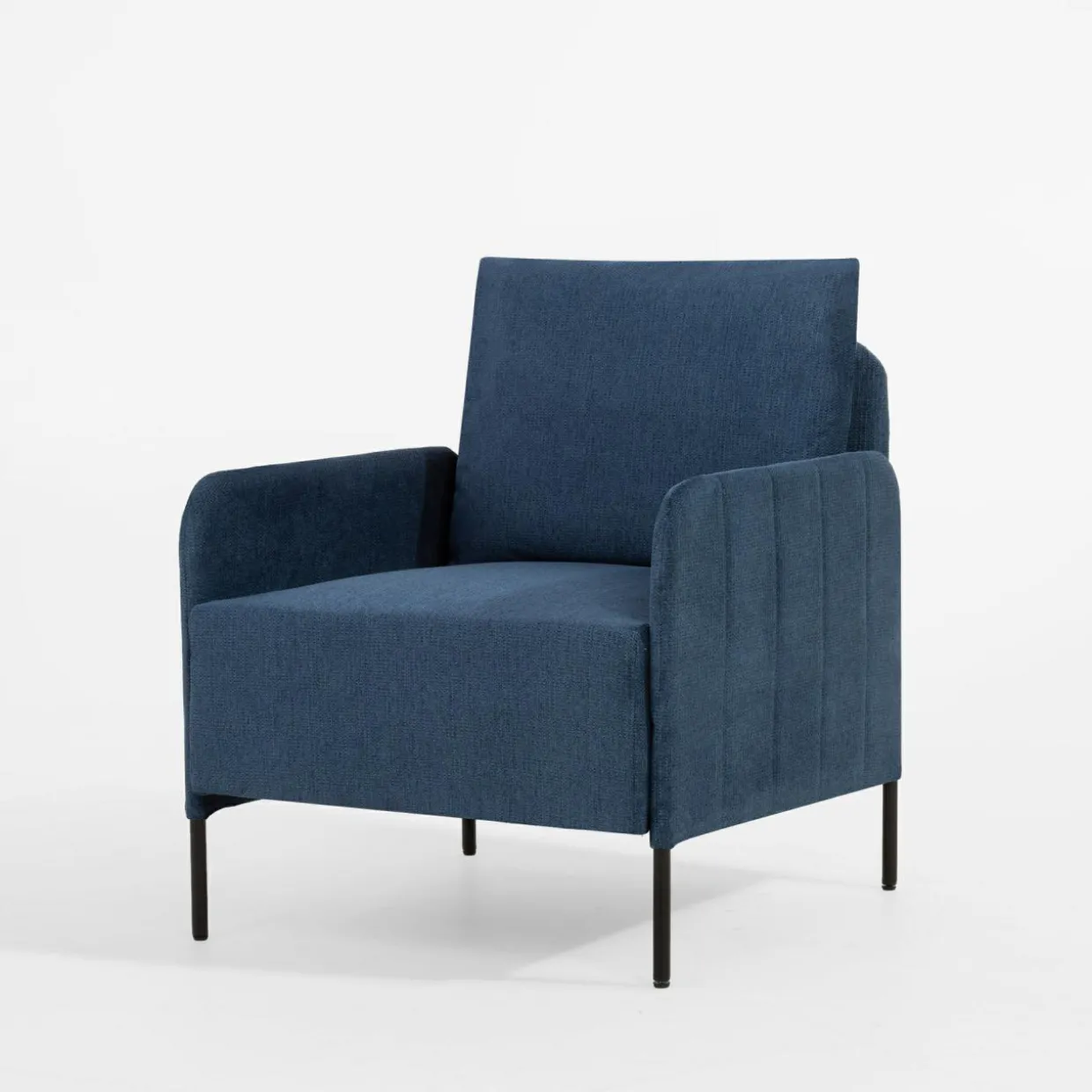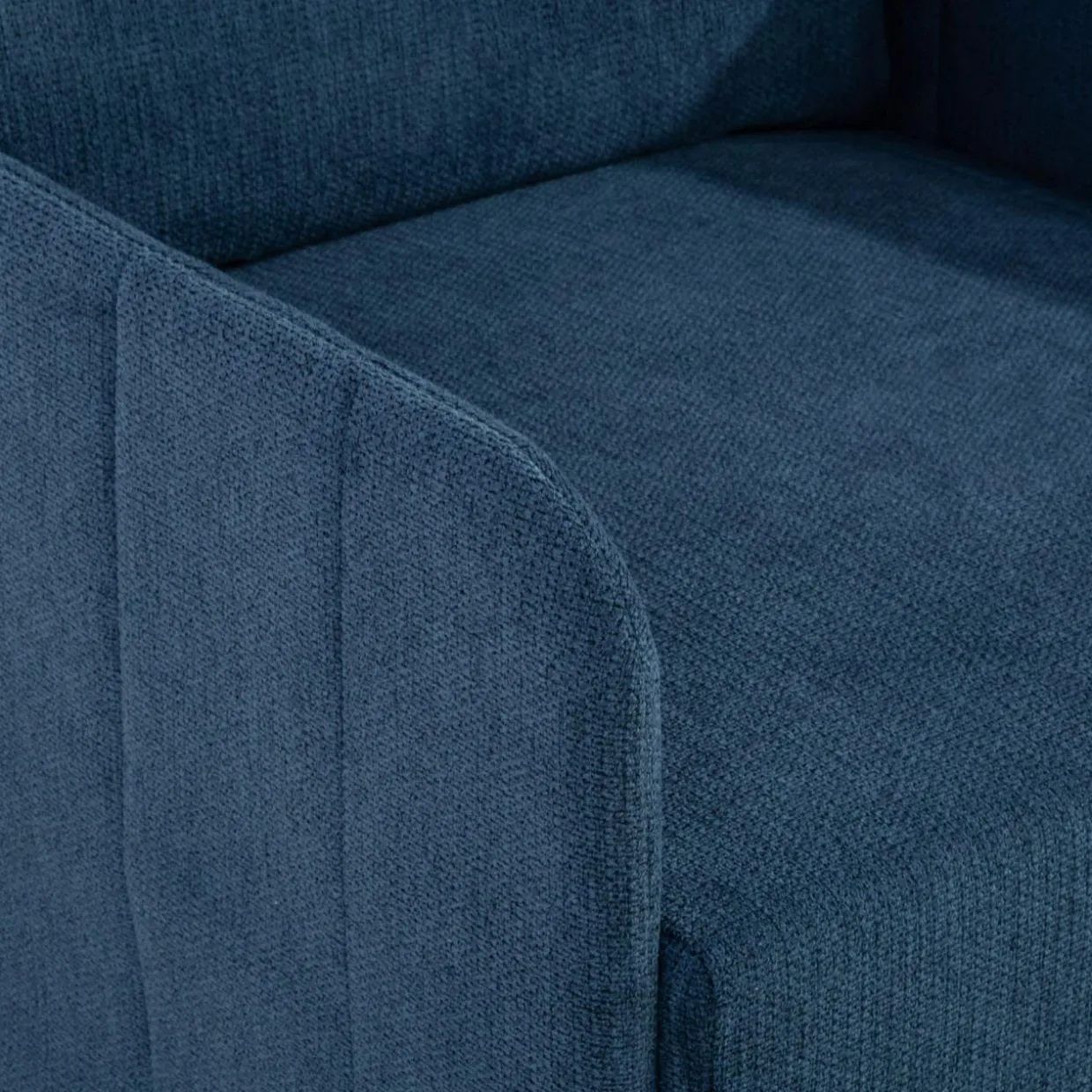 Fotel w niebieskim kolorze to doskonałe uzupełnienie do nowoczesnego salonu. Jego kompaktowy rozmiar i stylowy design sprawiają, że stanie się ulubionym miejscem do relaksu.