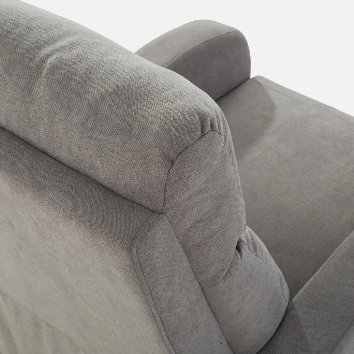 Szary odcień tapicerki i nowoczesny design sprawiają, że kolekcja pasuje do większości aranżacji wnętrz, zapewniając jednocześnie trwałość i komfort.