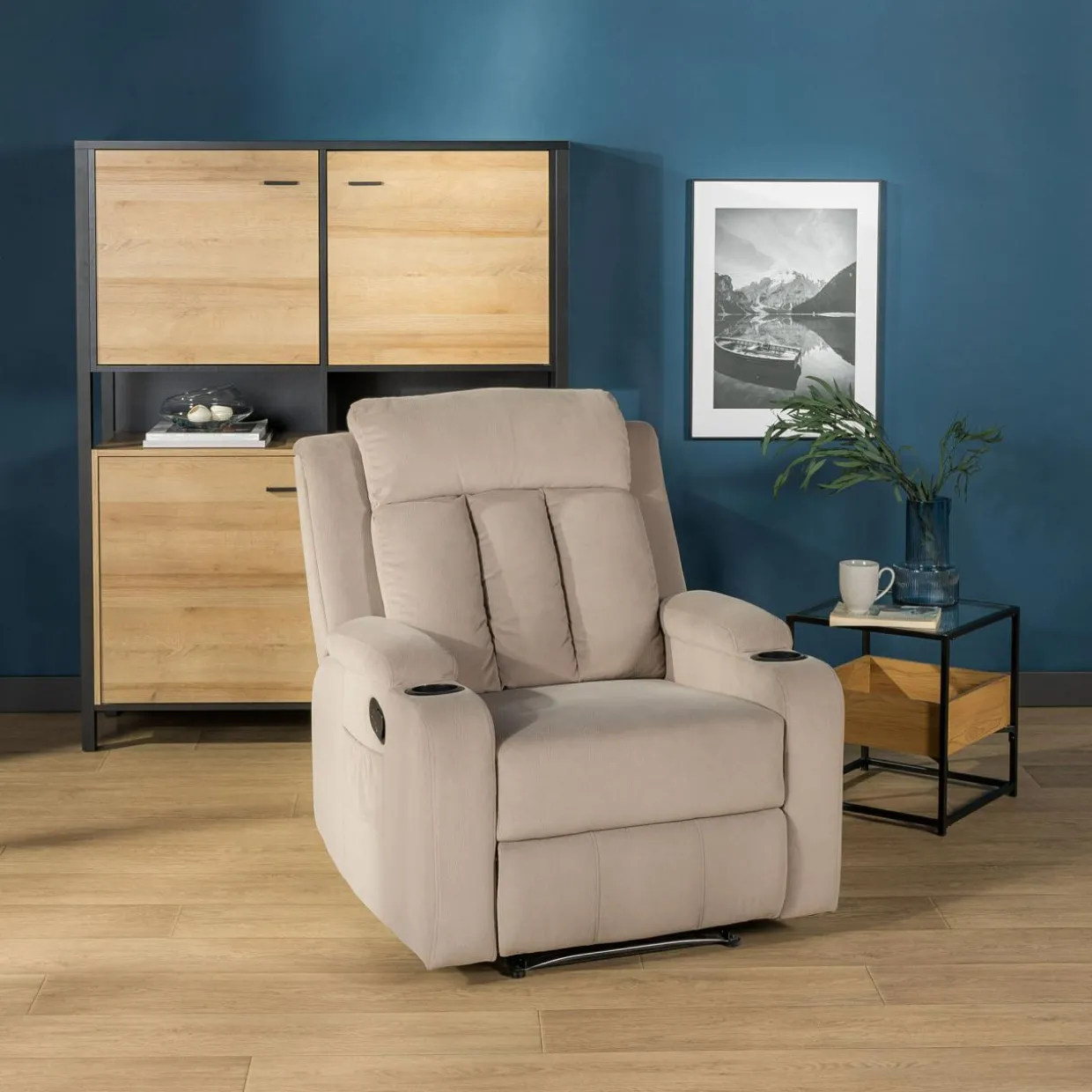- Z boku fotela znajduje się mechanizm uruchamiający manualną funkcję relaksu, dzięki czemu wygodnie wypoczniesz w pozycji półleżącej.