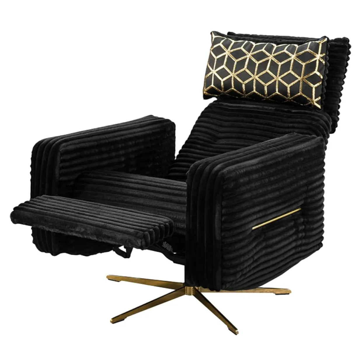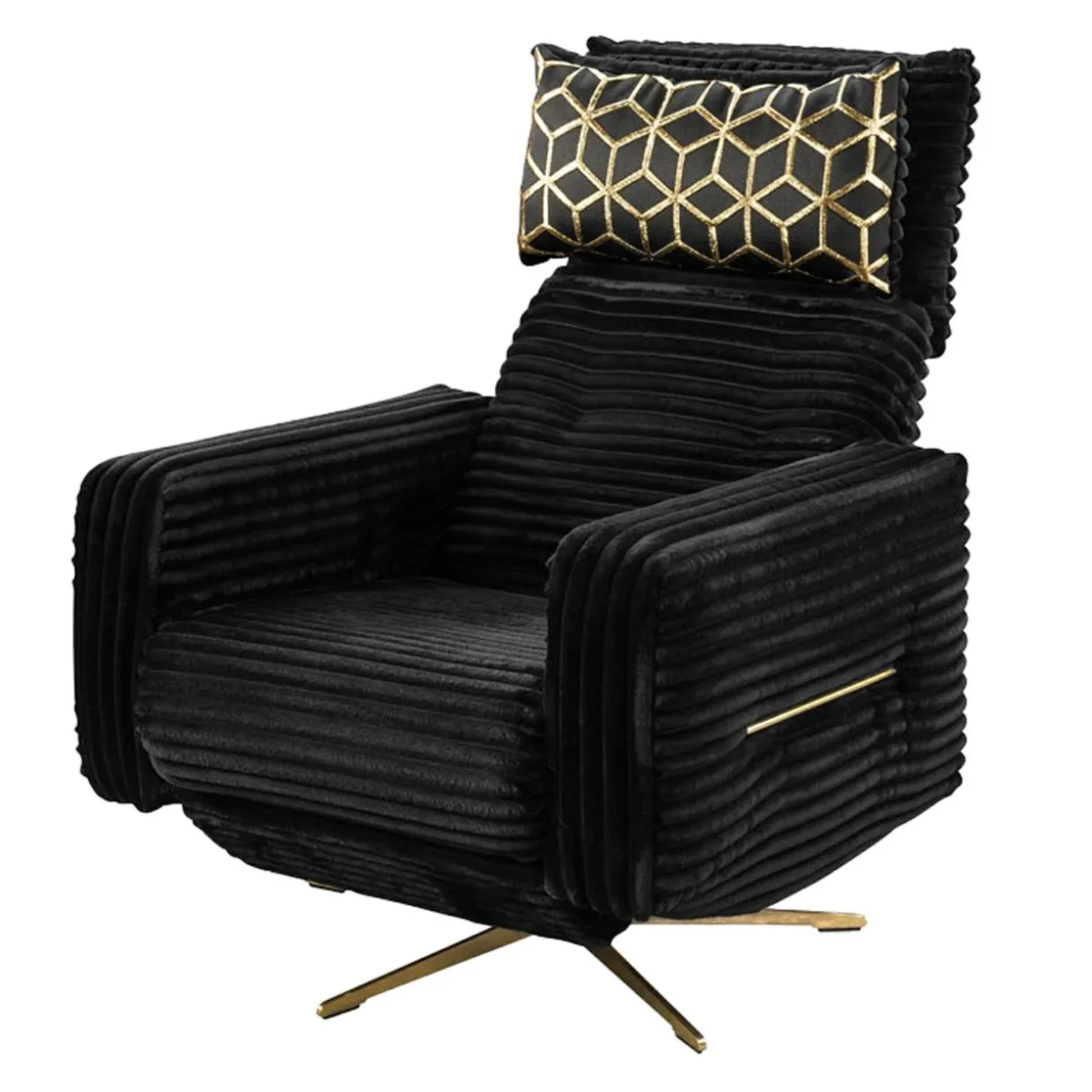 - Ciemny sztruks i złote dodatki tworzą mebel, który wpasuje w nowoczesne i glamour wnętrza. Geometryczny wzór na poduszce będzie świetnie wyglądać także w afrykańskich aranżacjach.