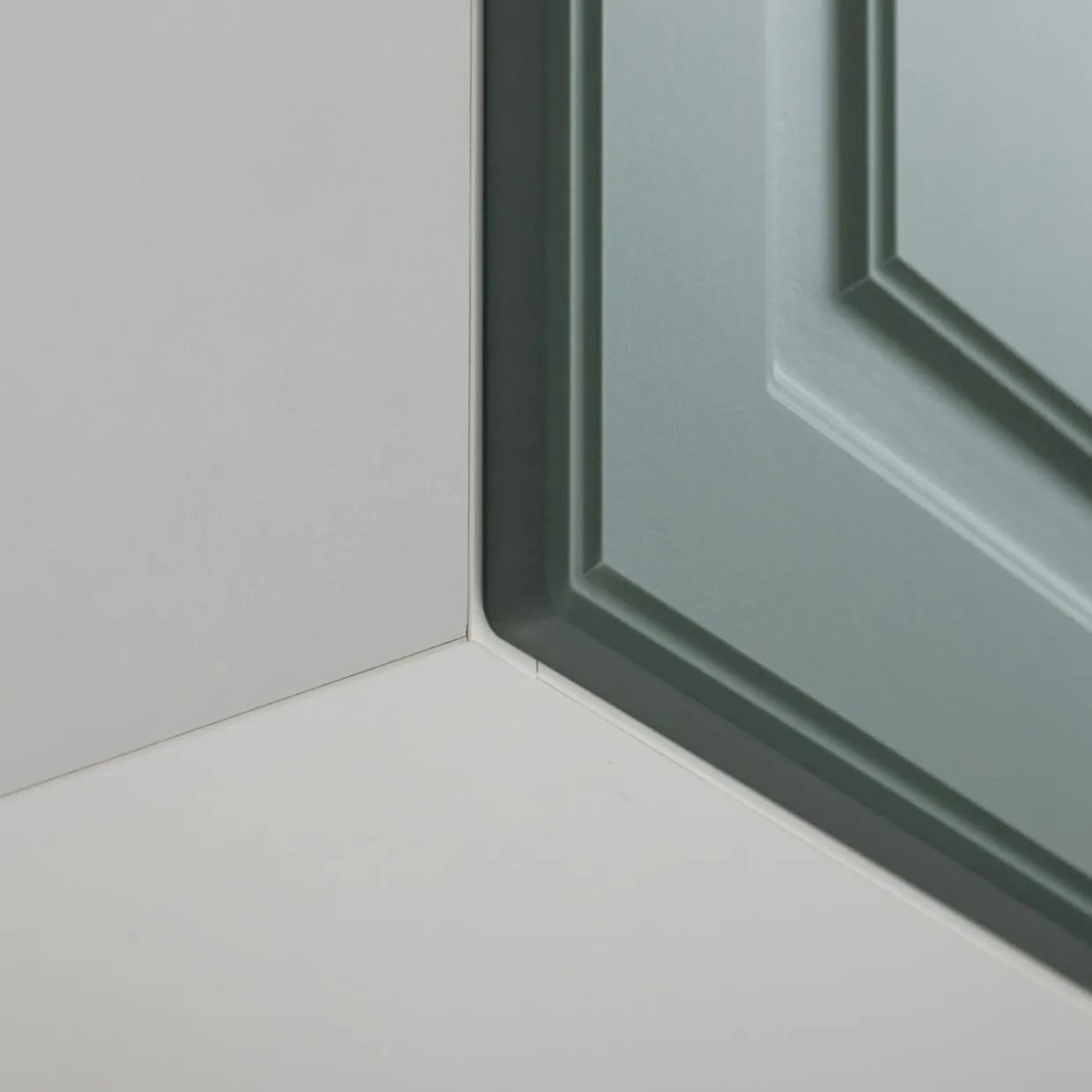Oliwkowe fronty ALDEA nie posiadają fabrycznego otworu pod uchwyt – jest za to możliwość wykonania go w dowolnym miejscu podczas montażu.