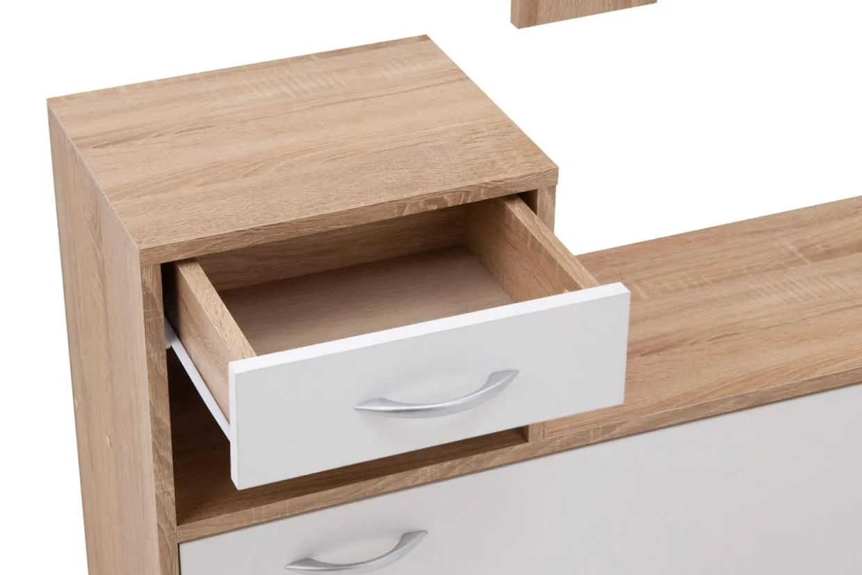 - Wykończenie w kolorze dąb sonoma pasuje do nowoczesnego, jasnego pomieszczenia. Sprawi, że pokój wyda się jaśniejszy.