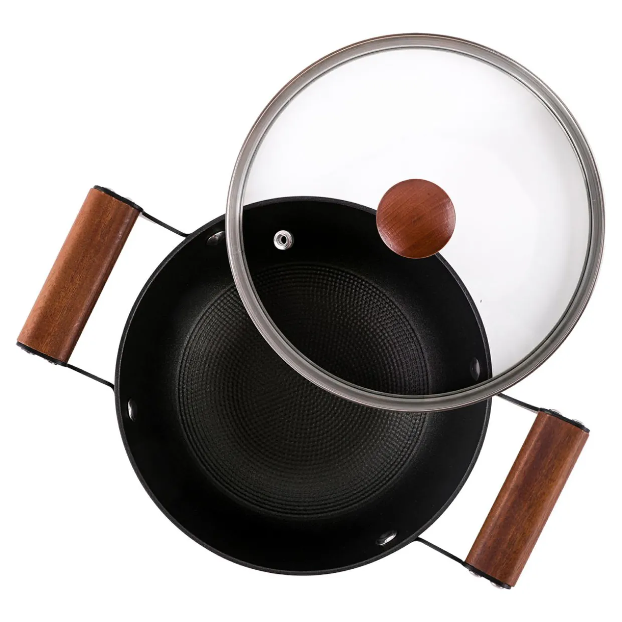 Do garnka dołączona jest szklana pokrywka o średnicy: 28 cm. Posiada wygodny, drewniany uchwyt.