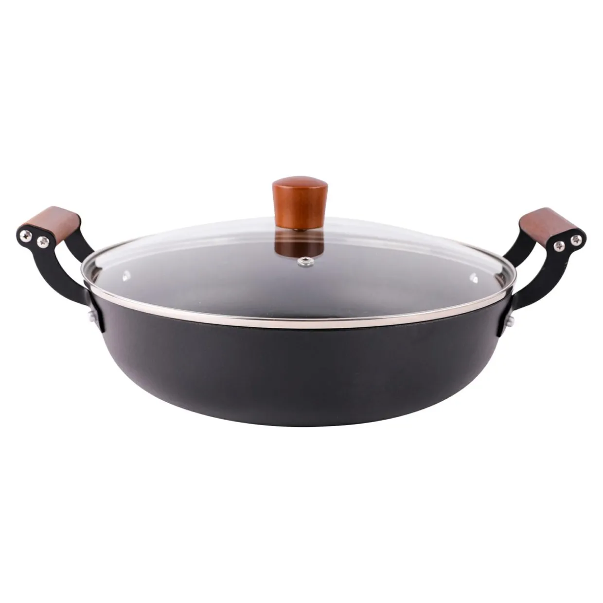 Do garnka dołączona jest szklana pokrywka o średnicy: 26 cm. Posiada wygodny, drewniany uchwyt.