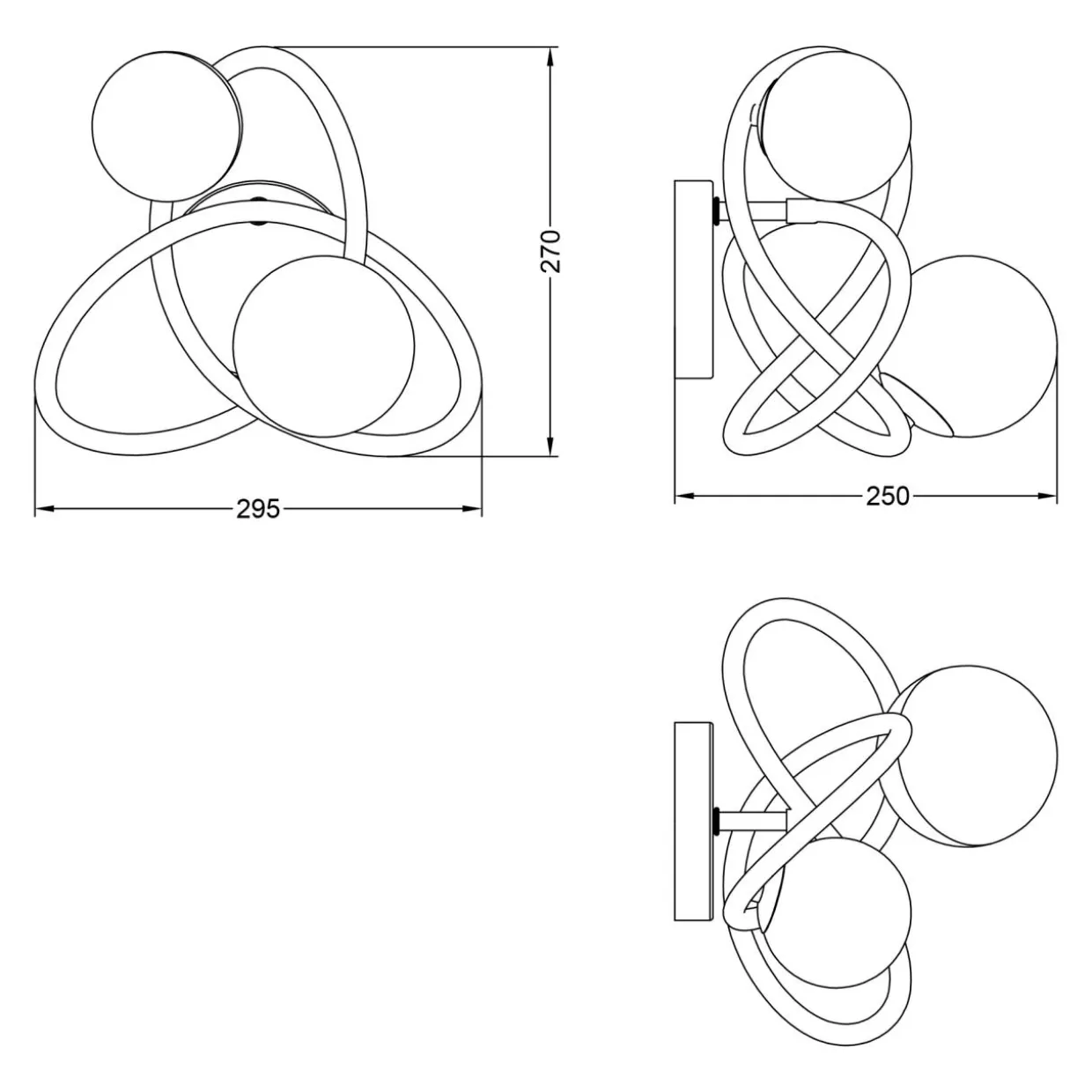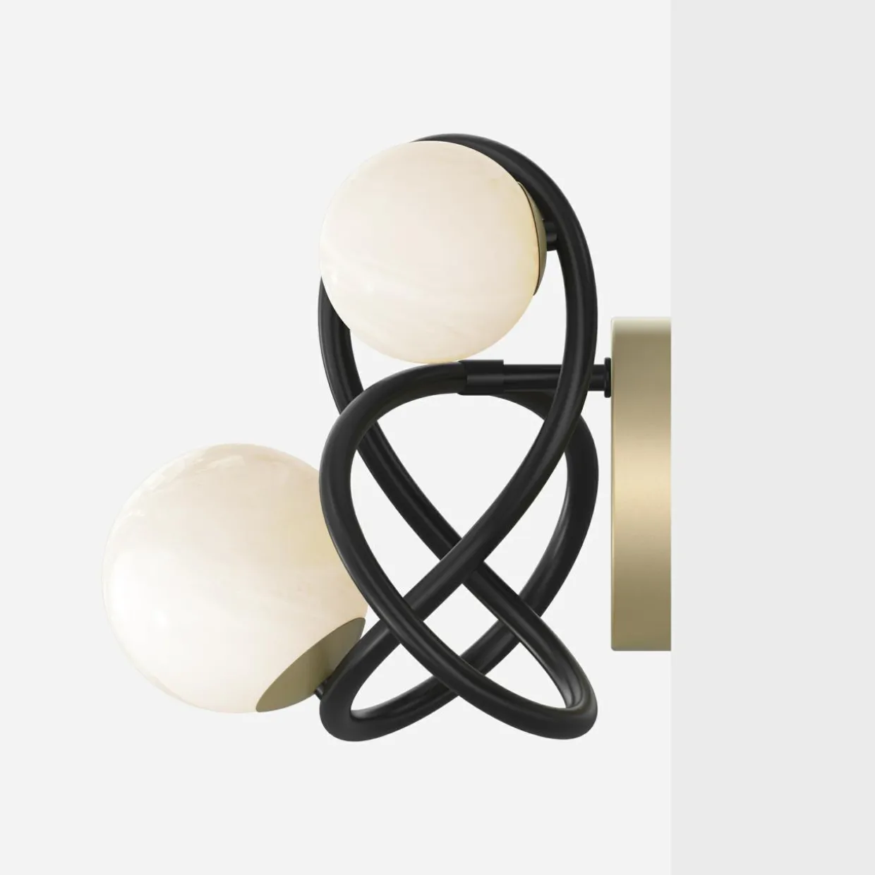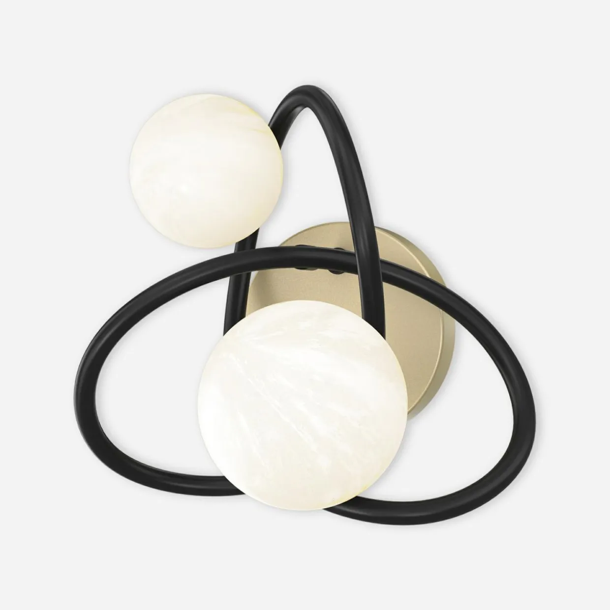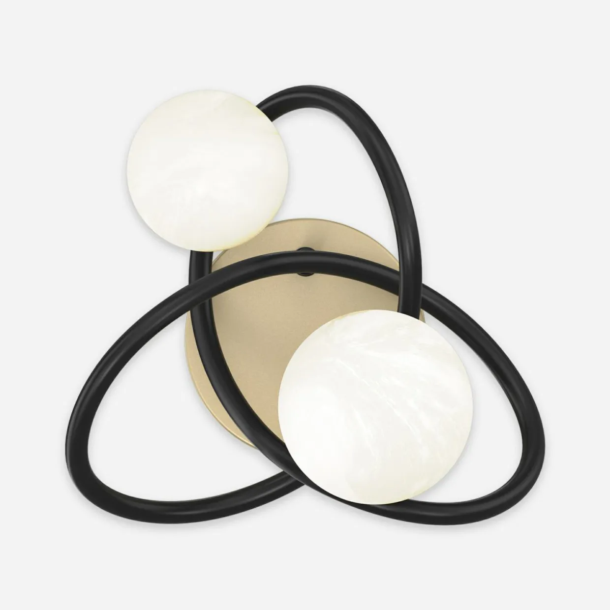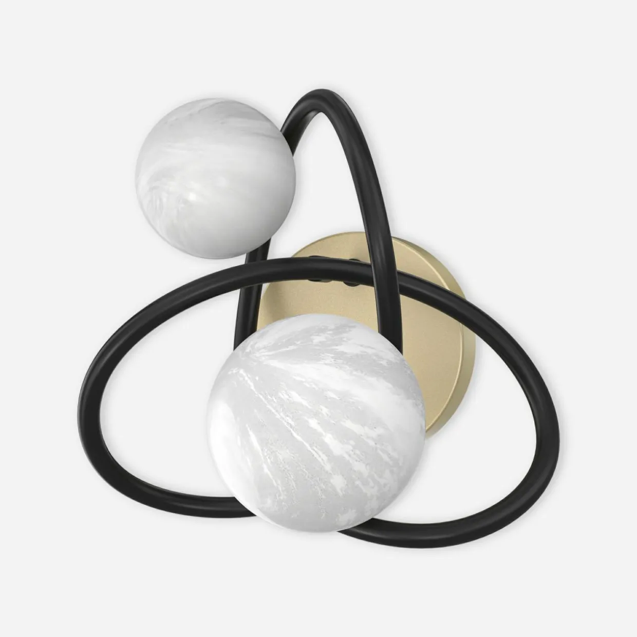 Czarna oprawa o kształcie wstęgi Möbiusa została upiększona aż 2 kulistymi kloszami o wykończeniu w perłowej bieli i matowego złota.