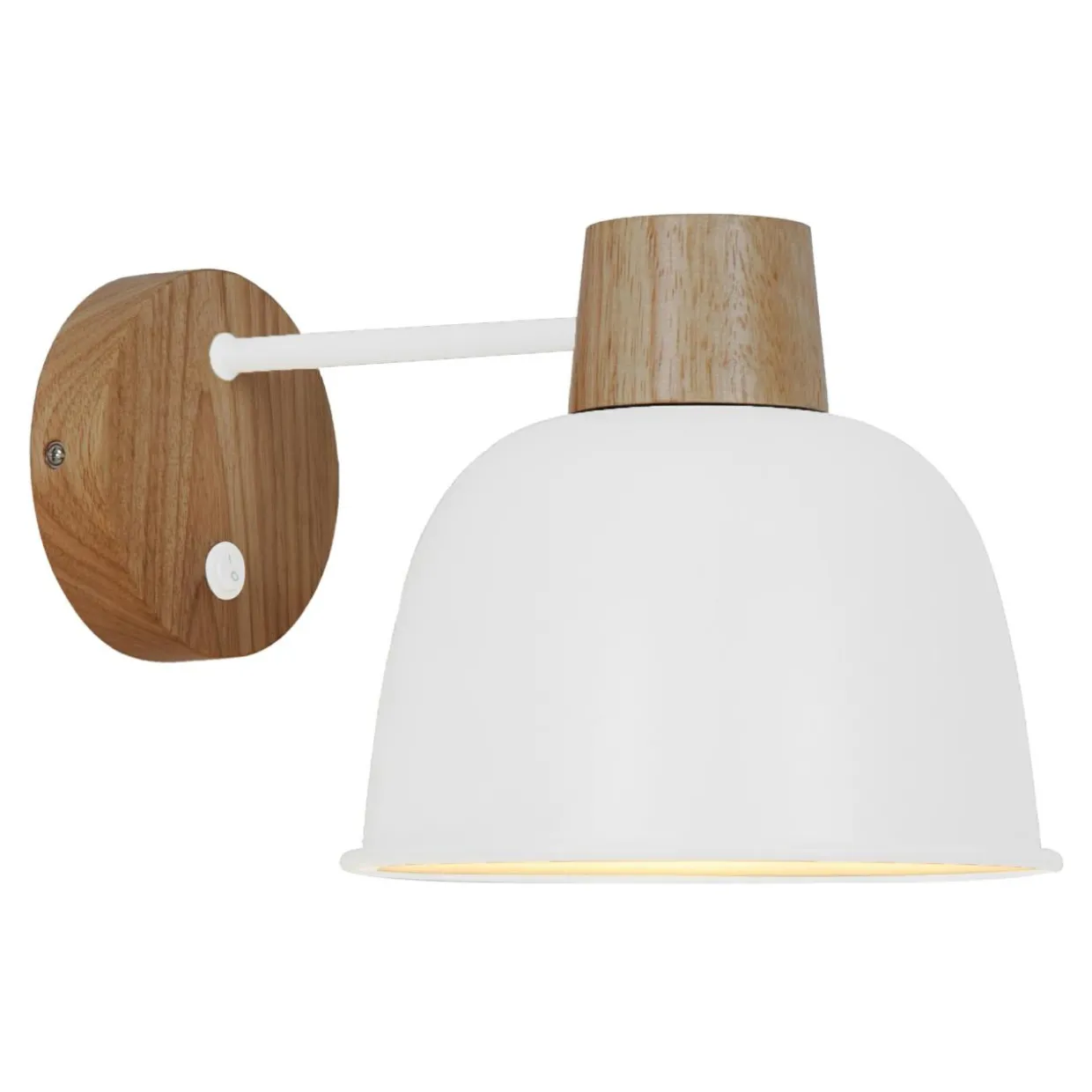 Biały kolor ORLO jest dopełniony elementami w odcieniu jasnego drewna w górnej części klosza oraz na podsufitce.