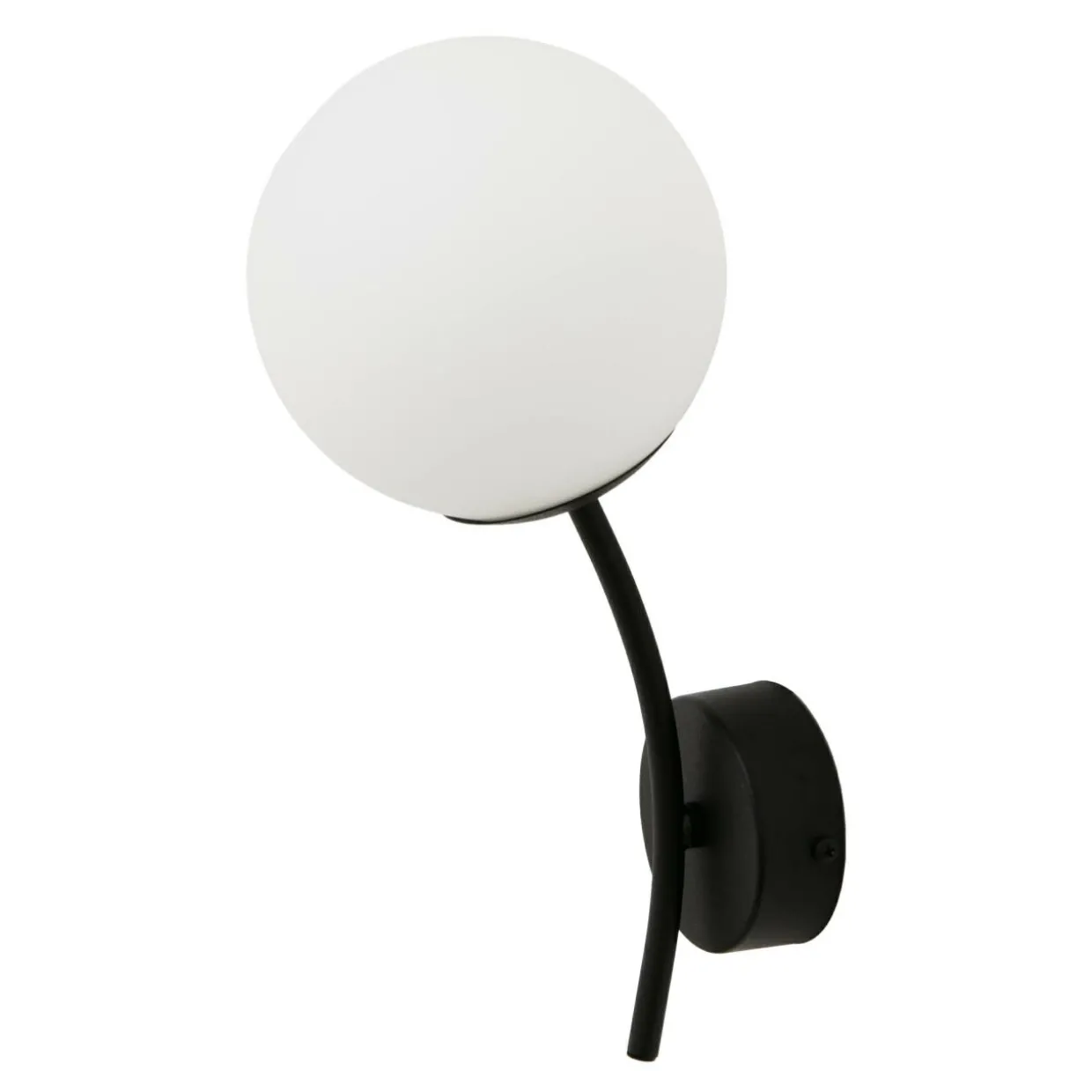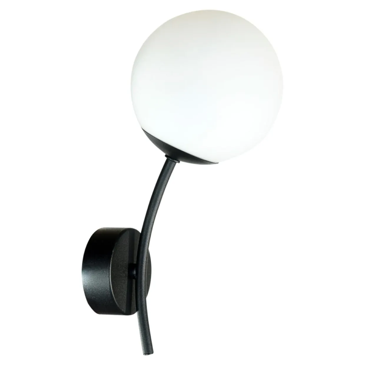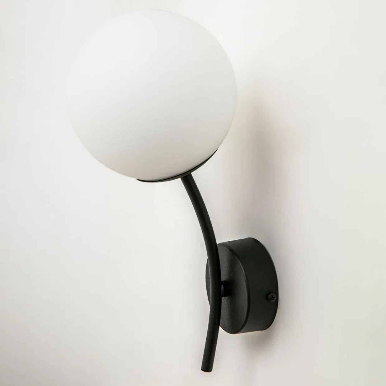 Okrągła podstawa, wygięte w łuk ramię oraz kulisty klosz tworzą razem kompozycję, która pasuje do eleganckiego, gustownie urządzonego wnętrza.