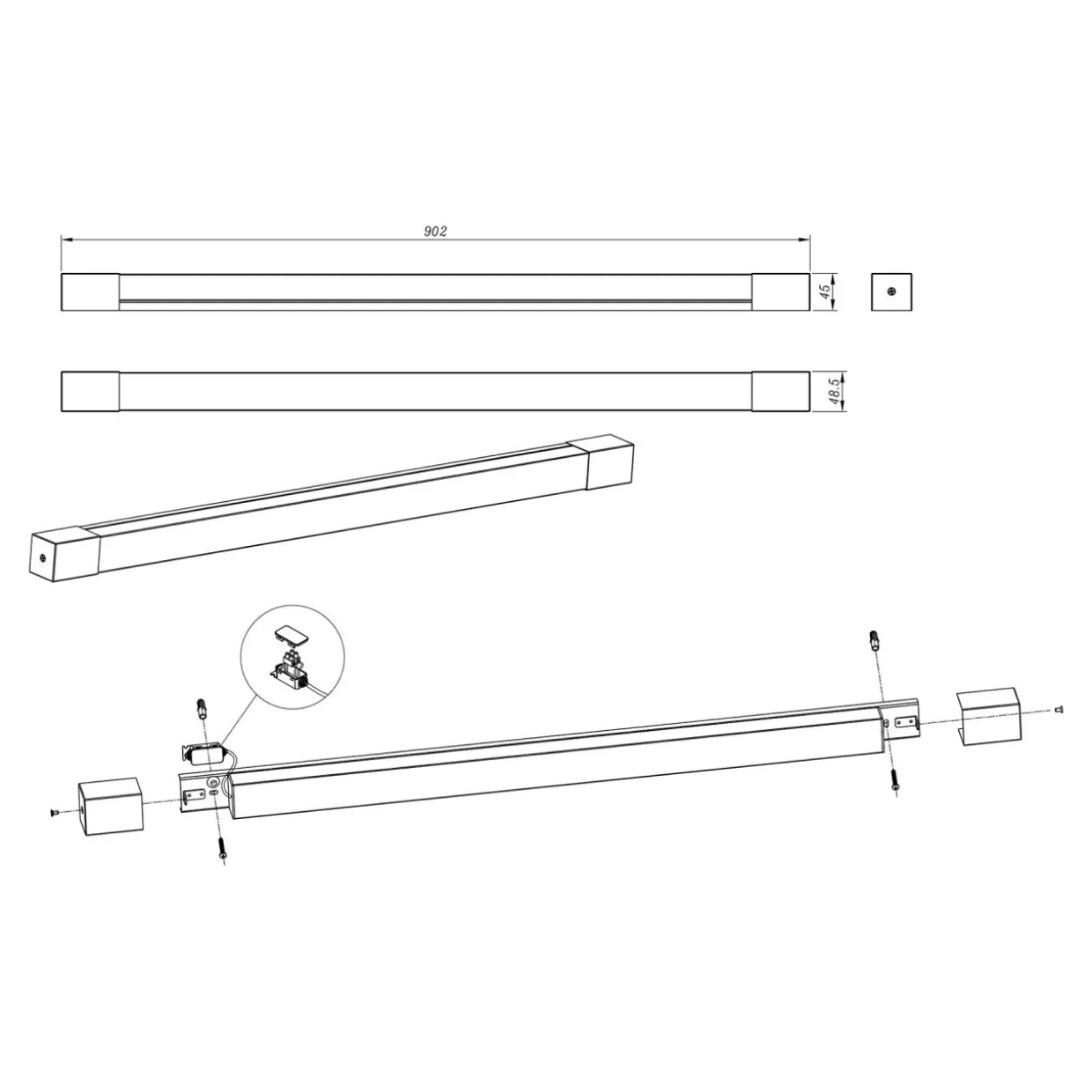 - PARKS posiada geometryczny kształt oprawy, nieco stylizowany na klasyczną świetlówkę. Moduł LED jest w środkowej części lampy.