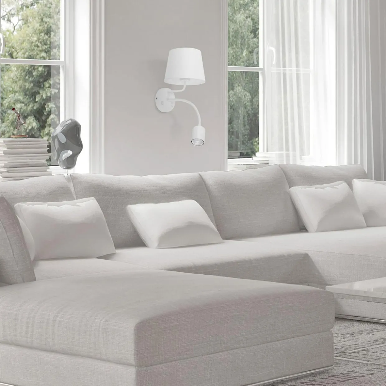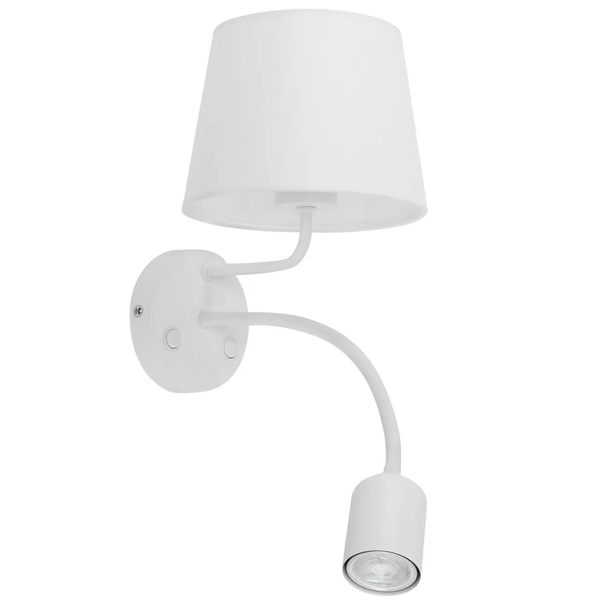 Biała obudowa podstawy, ramion i klosza sprawia, że kinkiet MAJA można łatwo dopasować do większości aranżacji. Świetnie też wygląda w połączeniu z żywymi kolorami. Posiada oprawy przeznaczone dla standardowych żarówek typu E27 o maksymalnej mocy 60W oraz żarówek LED typu GU10 o mocy 10W.