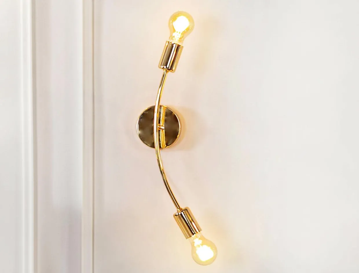 2 żarówki na rozłożystych ramionach lampy to oświetlenie, które idealnie podkreśli niecodzienny styl przedpokoju, salonu, sypialni lub jadalni.