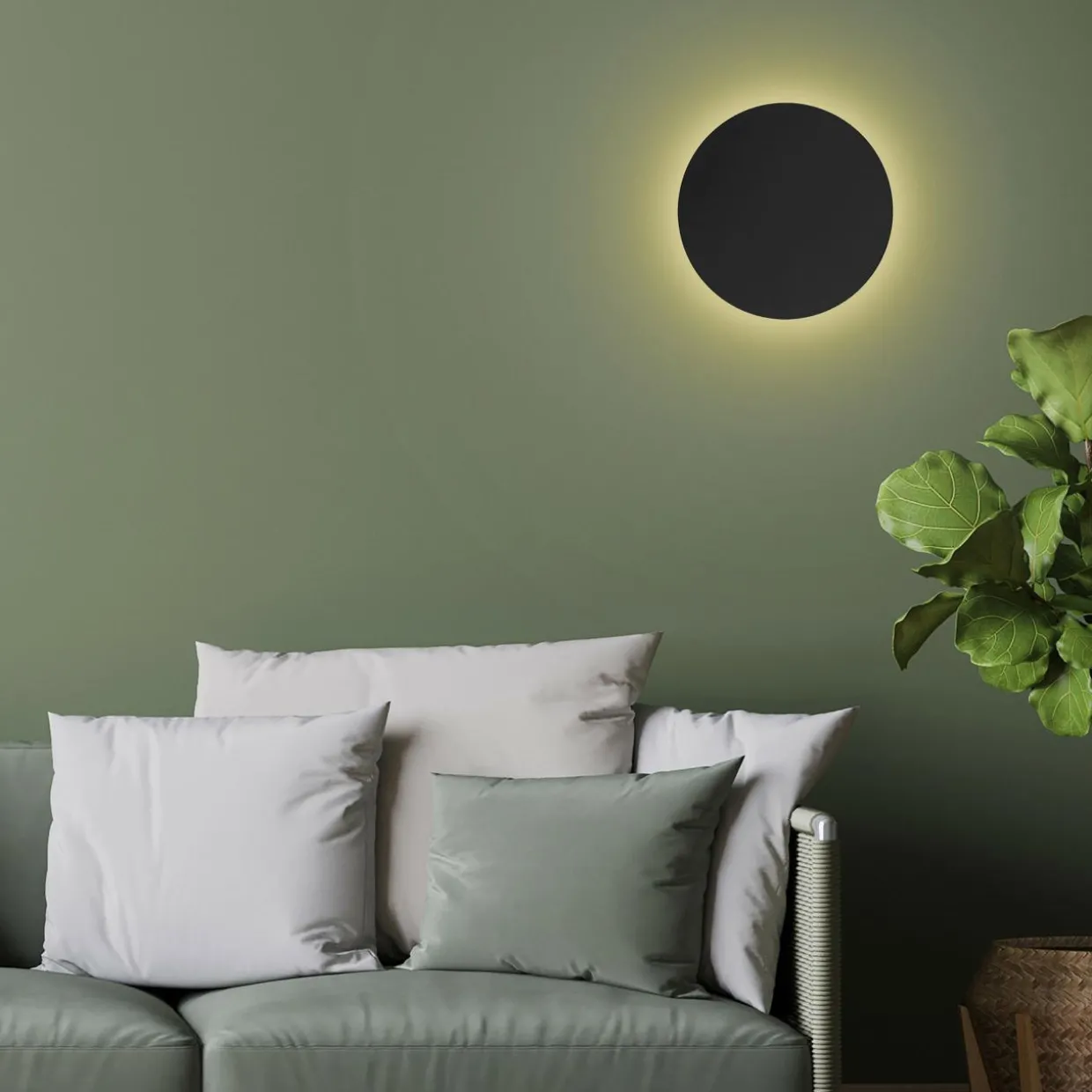 Czarna wersja kinkietu LUNA NEW oświetla przestrzeń w osobliwy sposób.