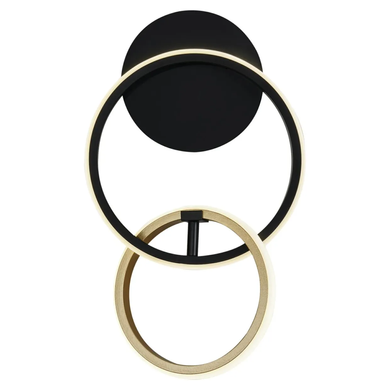 - 2 połączone ze sobą pierścienie w czarnym i złotym kolorze to odpowiedni dodatek do wnętrz minimalistycznych oraz loftowych.