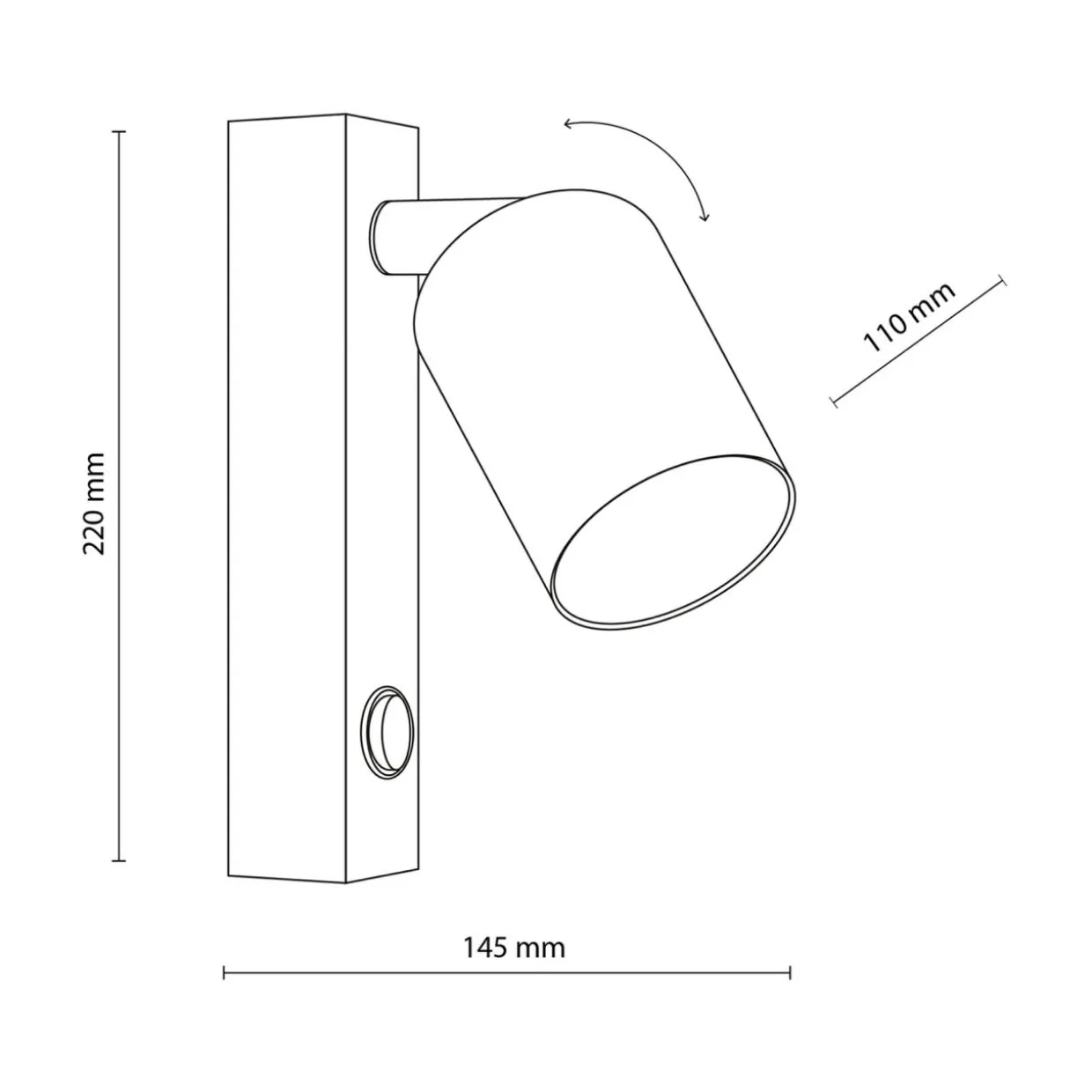 - Włącznik przy podstawie jest wygodnym rozwiązaniem, szczególnie gdy kinkiet znajduje się nad łóżkiem.
