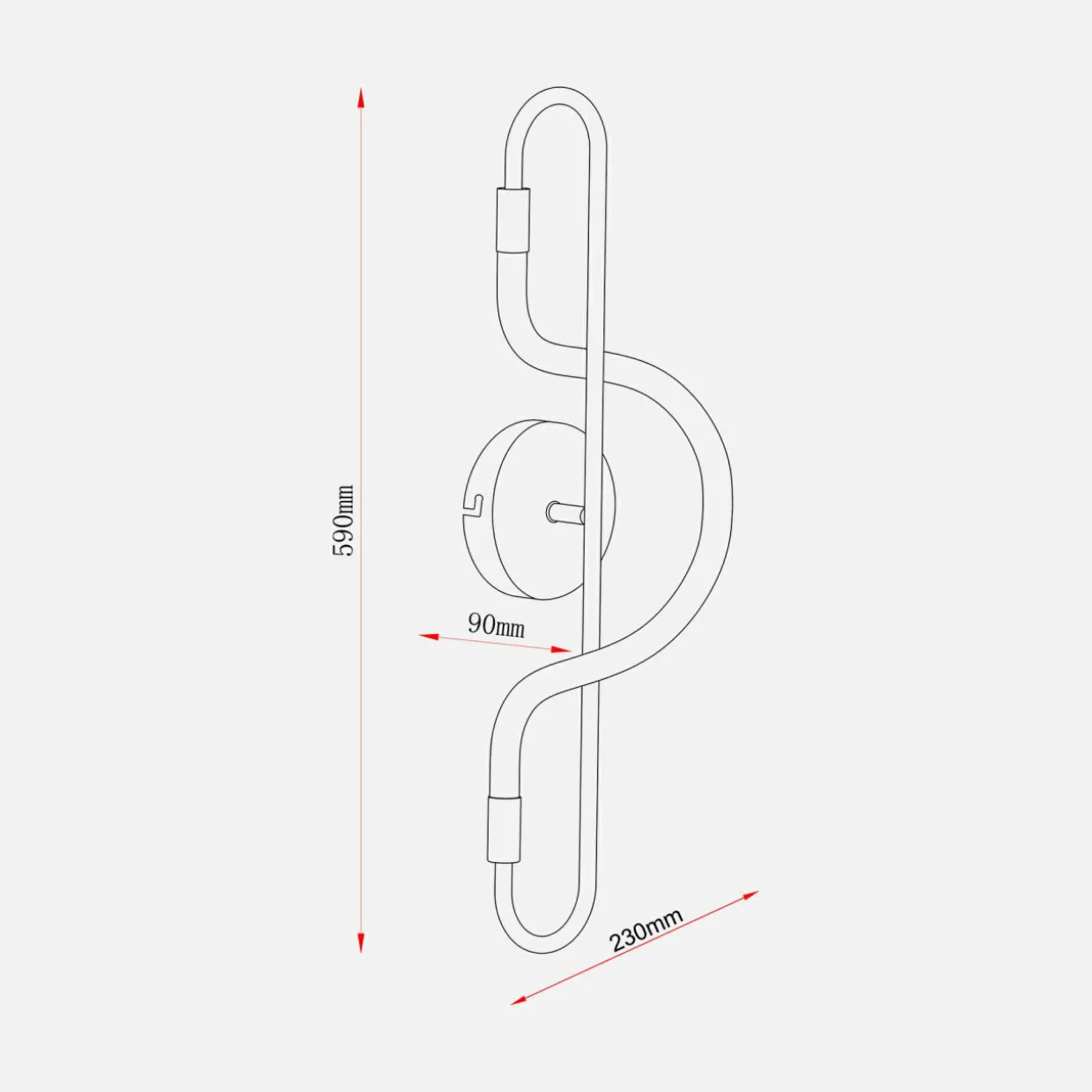 - Podstawa kinkietu ze sztywnym ramieniem i wijącą się na kształt „klucza wiolinowego” LED-ową wstęgą to ciekawy pomysł, który uświetni wygląd wnętrza.