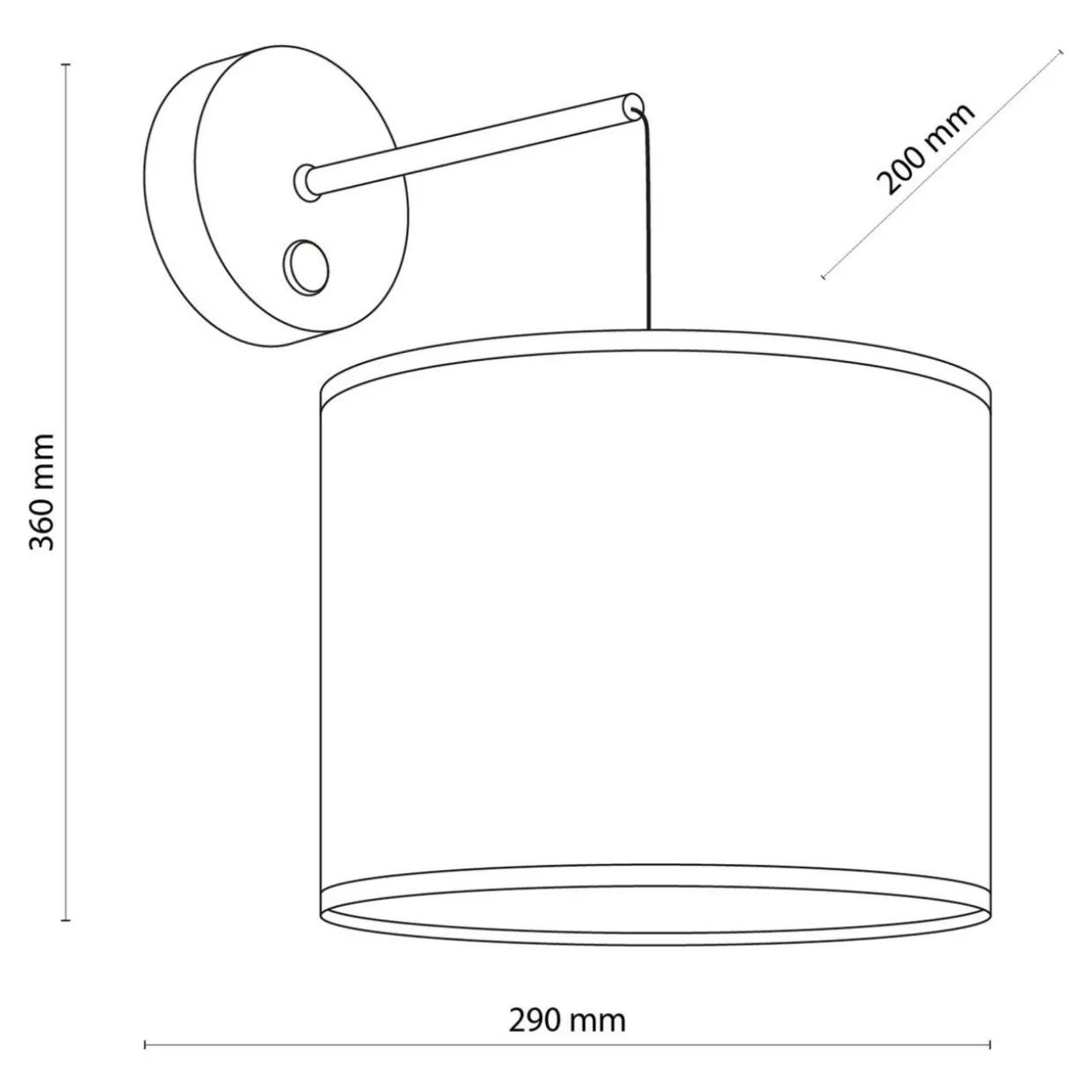 - Włącznik światła w kinkiecie LIBERIA jest wmontowany w podstawę, którą mocuje się do ściany, by zawiesić kinkiet.