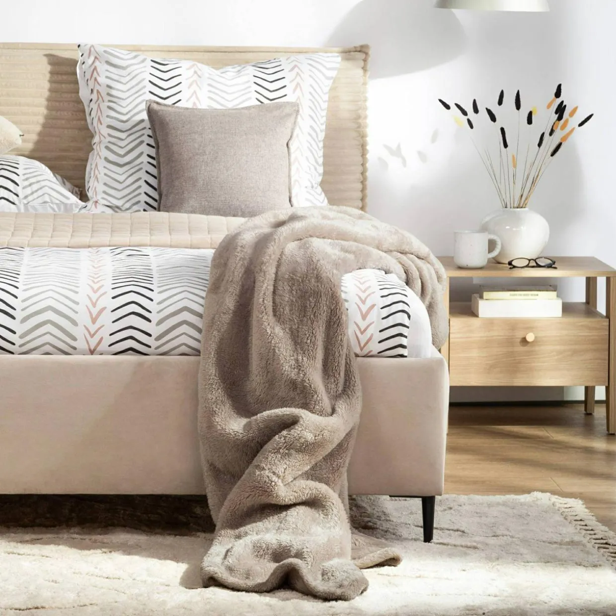 - Gruby koc w odcieniu szarości przechodzącej w ciepły beż;
