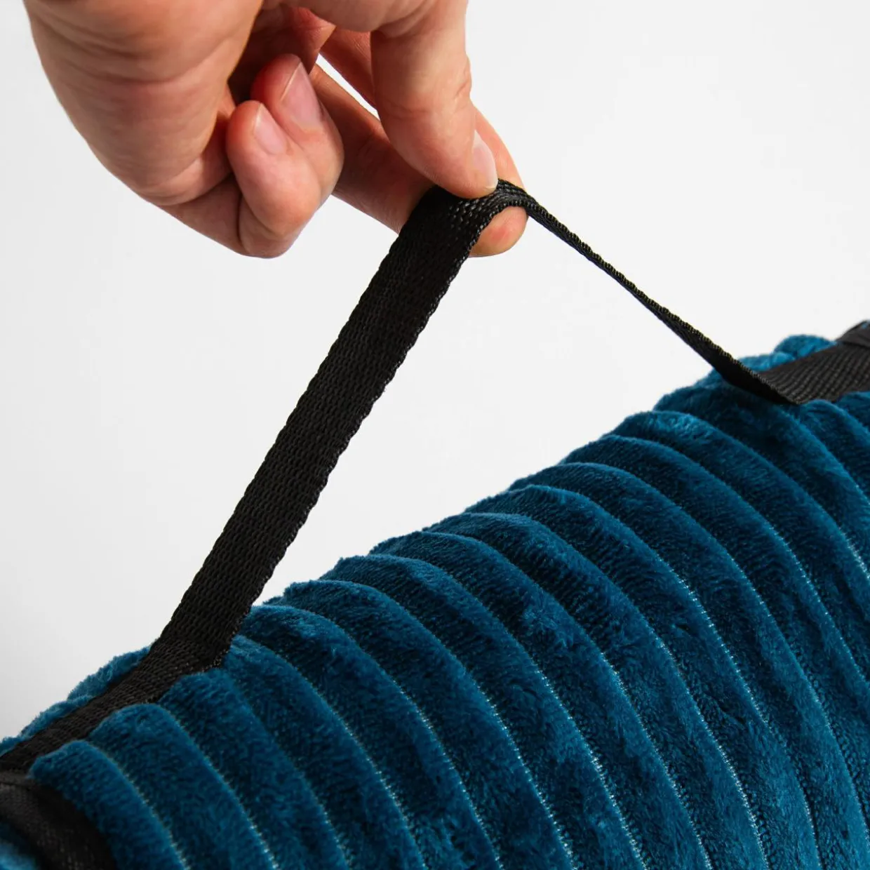 - Jest składany. Po złożeniu piknikowego koca zamkniesz go na rzep. Posiada również uchwyt z materiału, dzięki któremu wygodnie przeniesiesz go w ulubione miejsce.