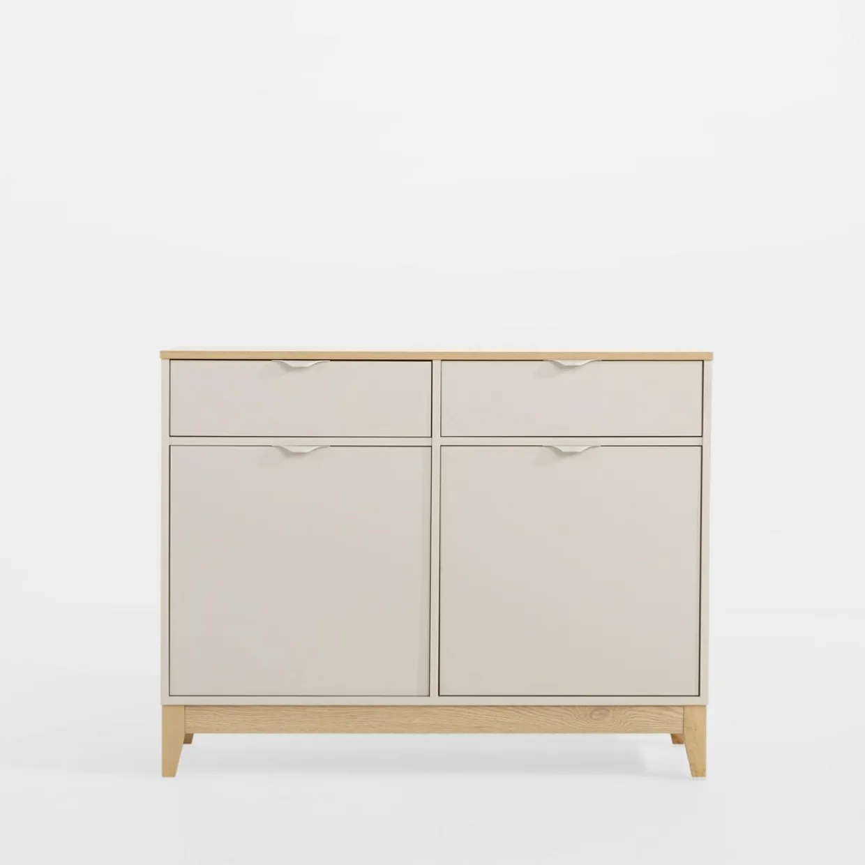 - Smukłe nóżki – nie tylko ułatwiają sprzątanie pod meblem, ale również dodają lekkości całej konstrukcji, dzięki czemu komoda nie przytłacza.