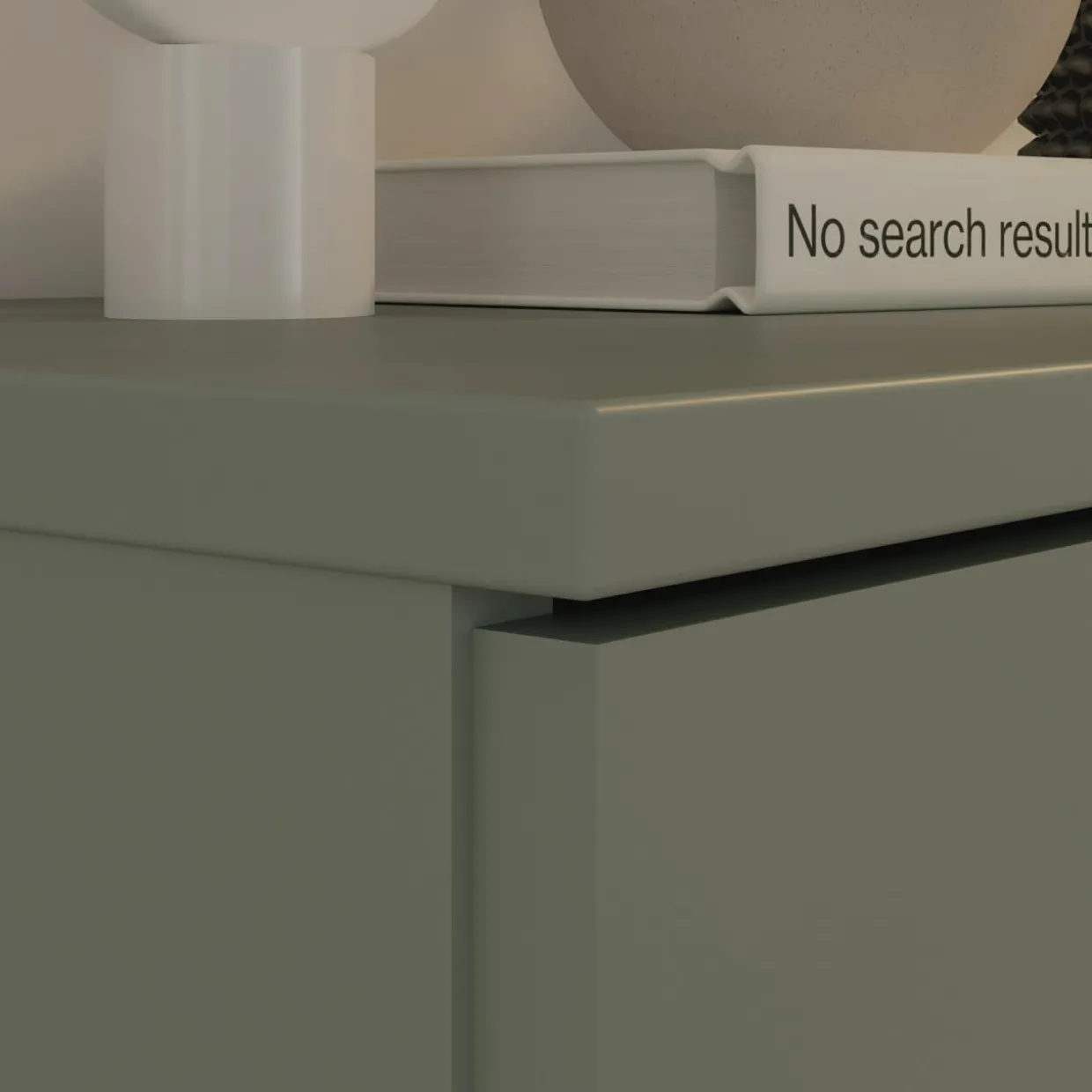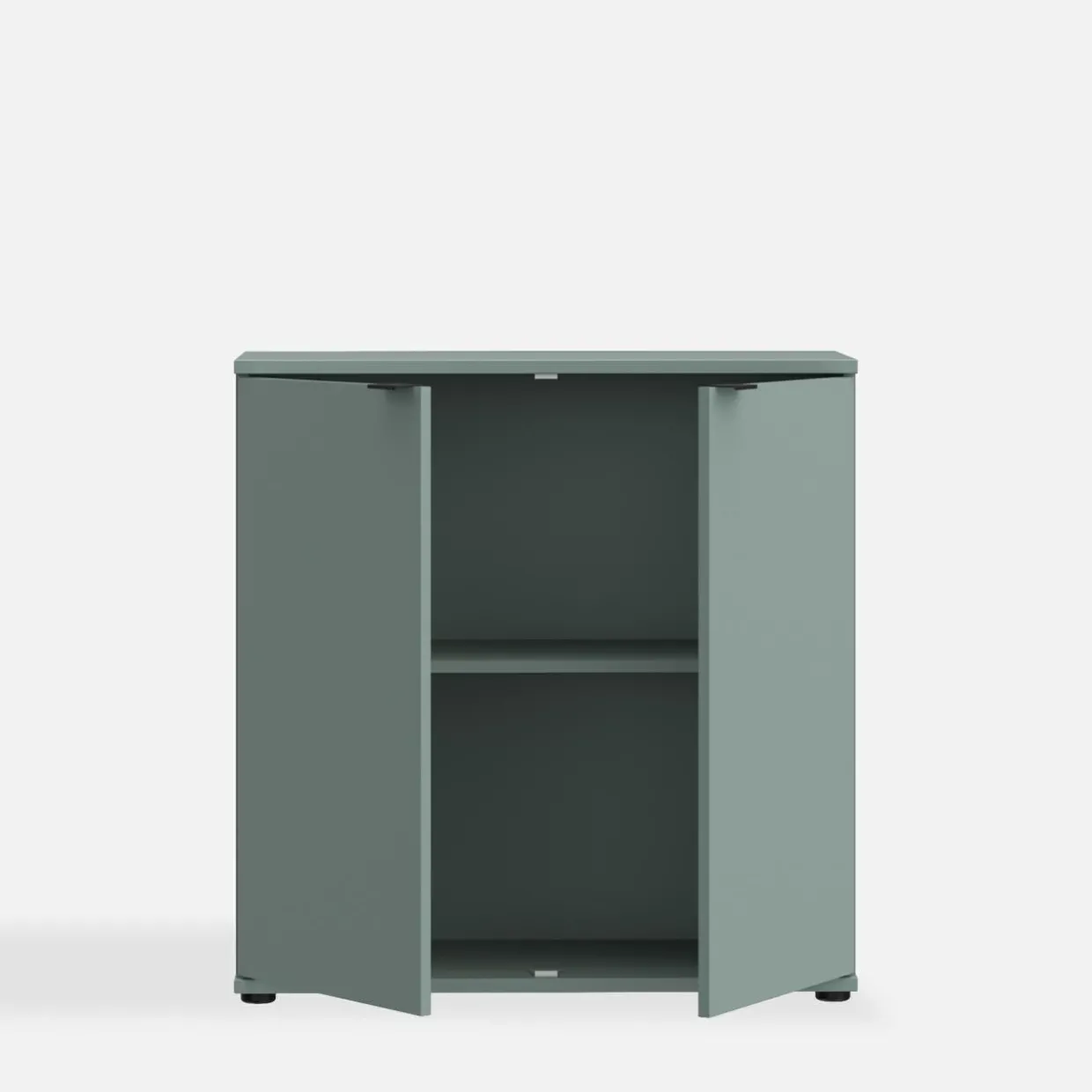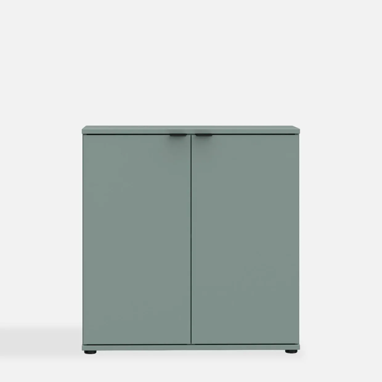 Prosta komoda GANYMEDE w odcieniu szałwi to rozwiązanie do wnętrz w naturalnych tonacjach. Dwudrzwiowy układ zapewnia wygodne przechowywanie.