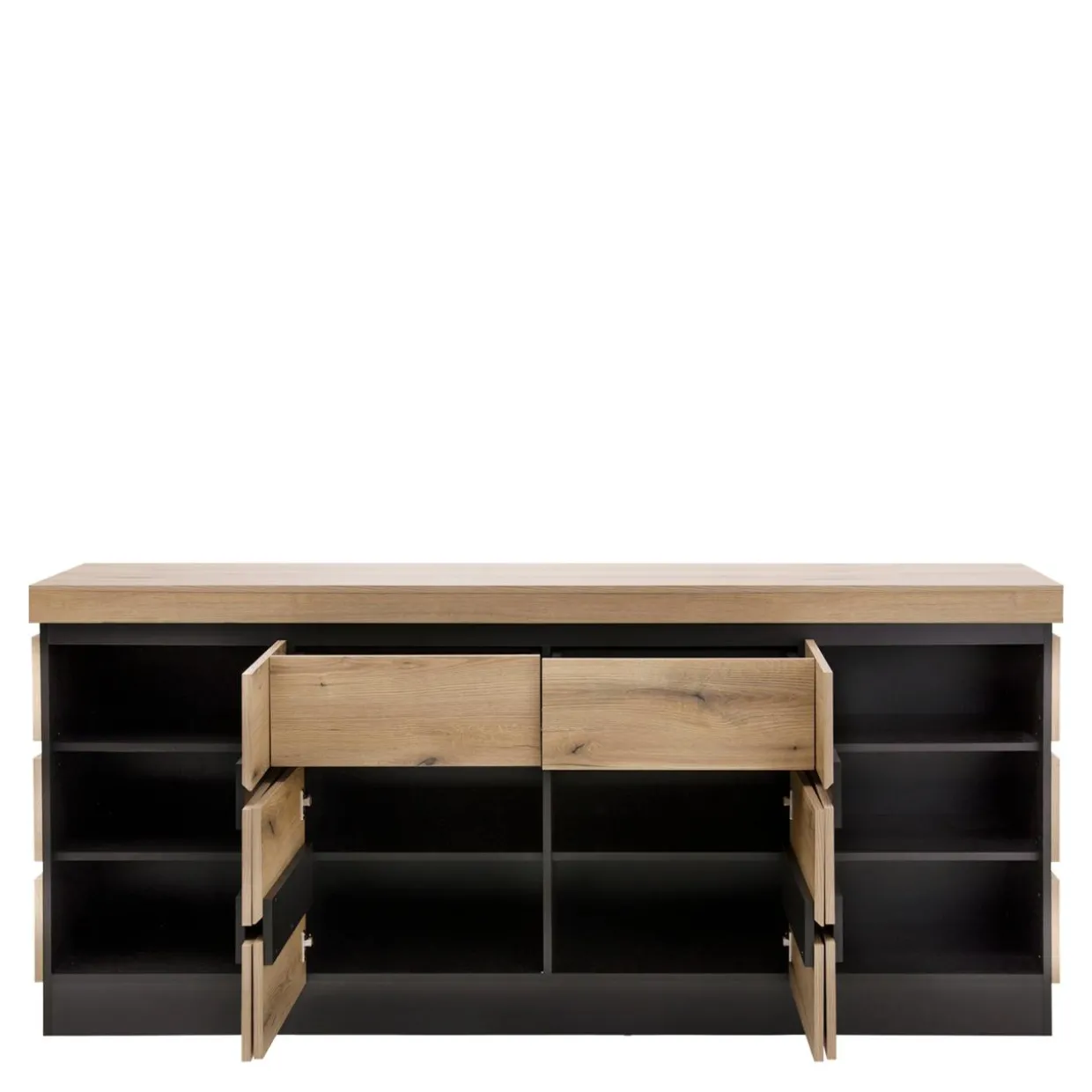 Ta komoda CORTE bez problemu pomieści nadprogramowe talerze, szklanki i kieliszki, bo ma aż 201,2 cm szerokości i 10 wnęk.