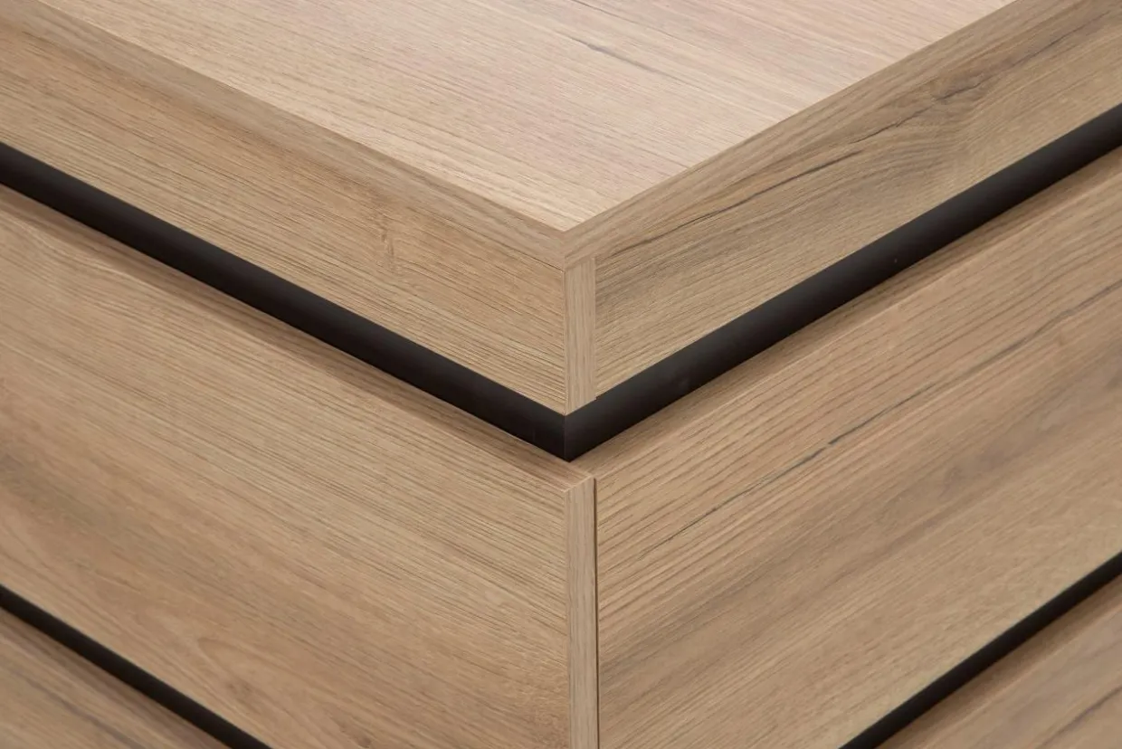 - Ciemne dekory układają się w pasiasty wzór, co nadaje komodzie nowoczesny wygląd.