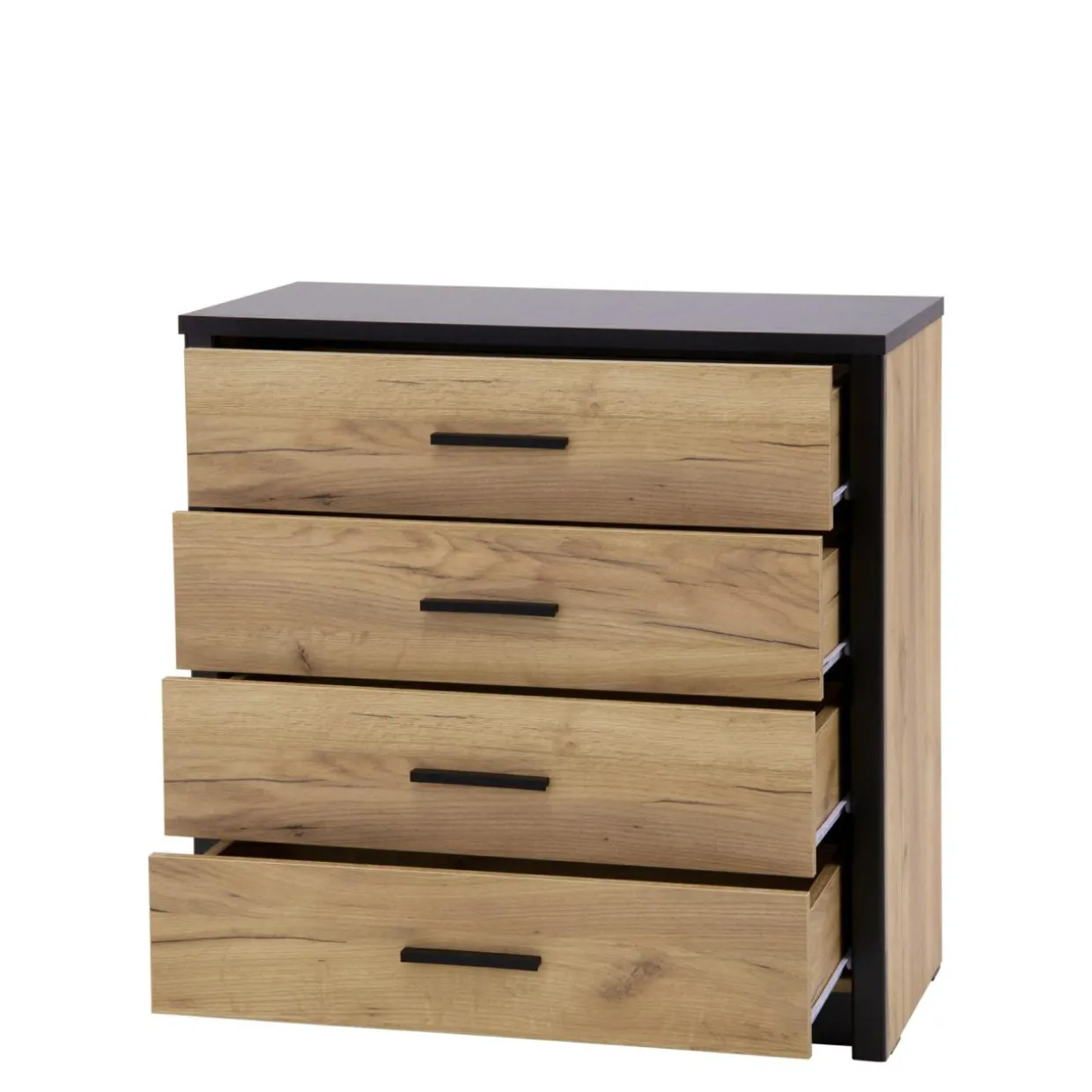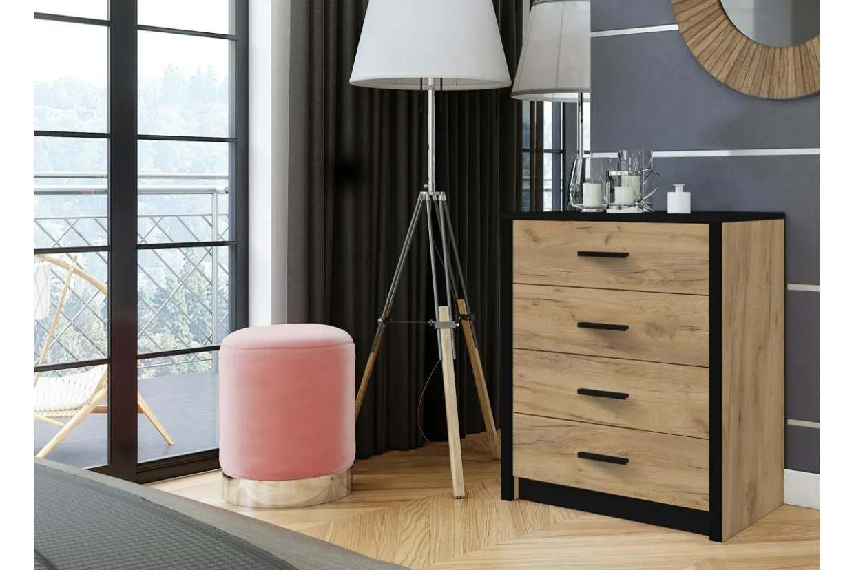 - Wnętrze komody dzieli się na 4 szuflady, w których łatwo uporządkujesz potrzebne przedmioty.
