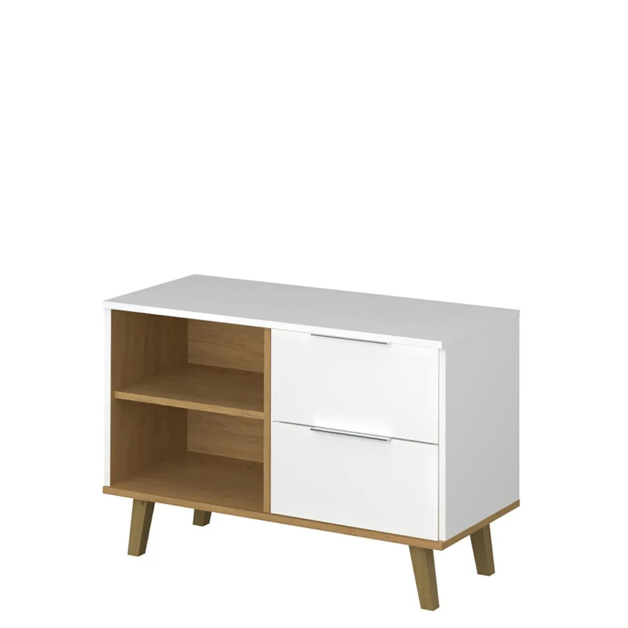 Komoda NEPTUN 2S/90 cechuje się lekką wizualnie formą i niewielkim wymiarem, który umożliwia wkomponowanie jej nawet w kameralne pomieszczenia.