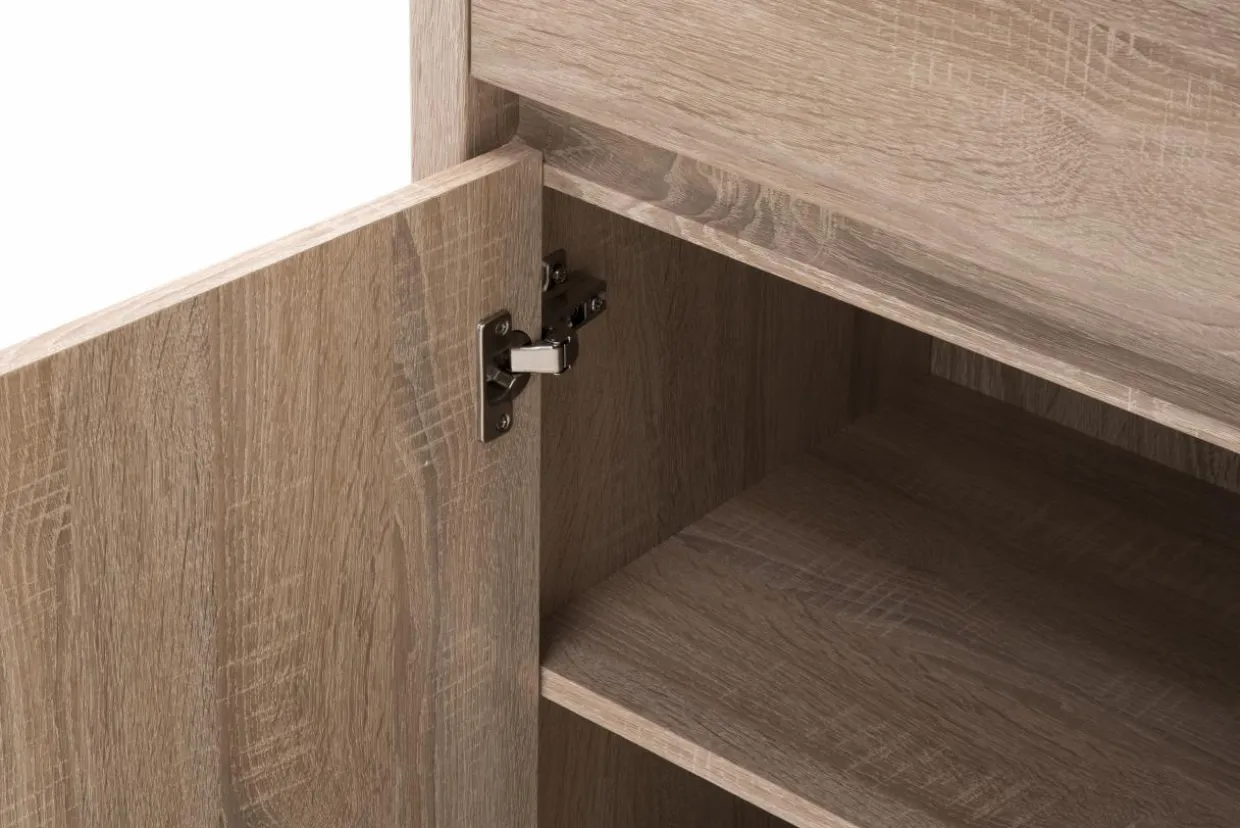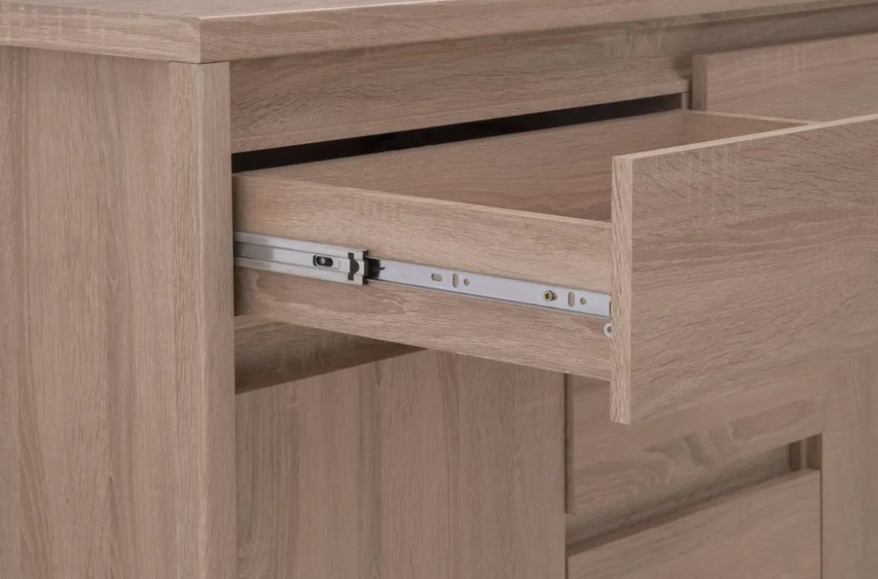 Uniwersalny kształt i wyposażenie komody sprawia, że można ją postawić zarówno w salonie, jak i sypialni czy przedpokoju.