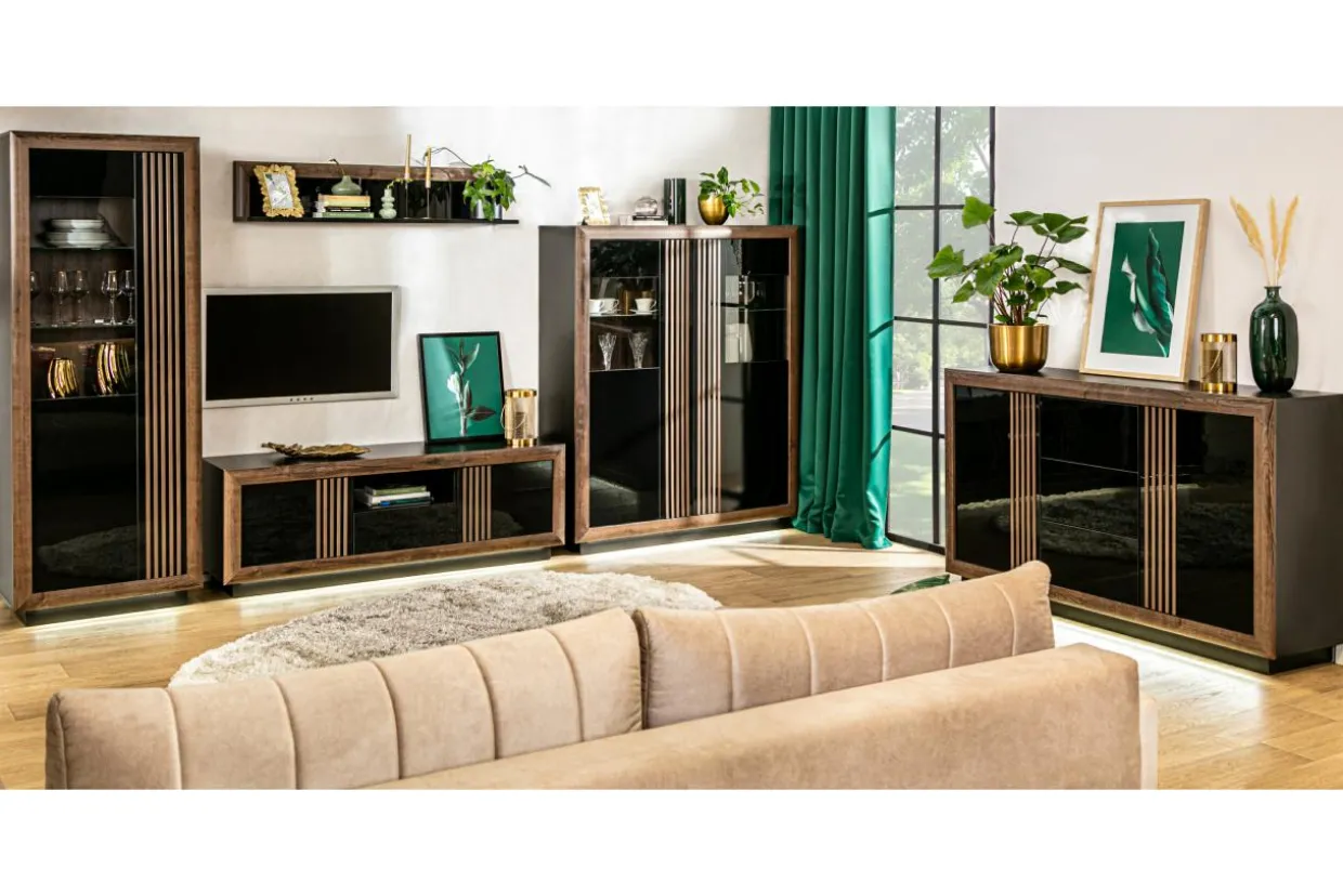 Kolekcja SAVONA to połączenie klasyki z nutą nowoczesności. Wybarwienie dębu szlachetnego wnosi do wnętrza wytworny klimat, a nowoczesny dekor w formie lameli, czarne połyskujące fronty i oświetlenie sprawiają, że meble SAVONA prezentują się niezwykle elegancko.