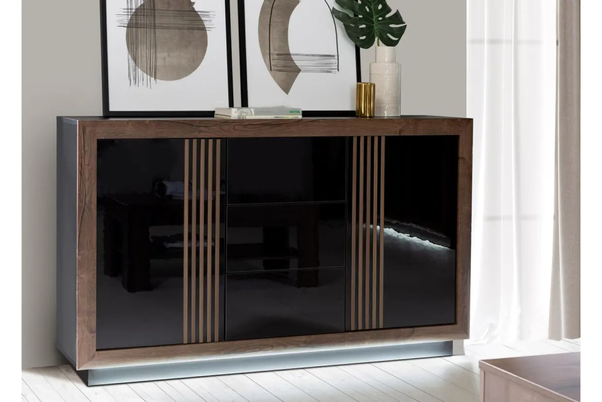 Dzięki zastosowaniu lameli na froncie, komoda SAVONA podkreśla nietuzinkowy charakter salonu, jadalni, pokoju dziennego czy przestronnego przedpokoju.