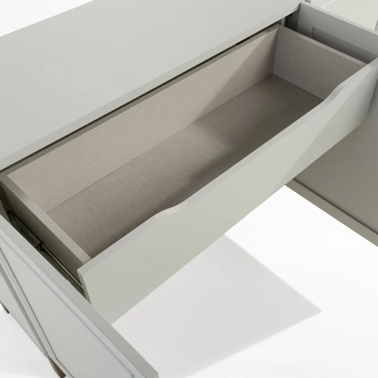 - Jasnoszare korpusy mebli będą pasowały zarówno do ciemnych i jasnych wnętrz.