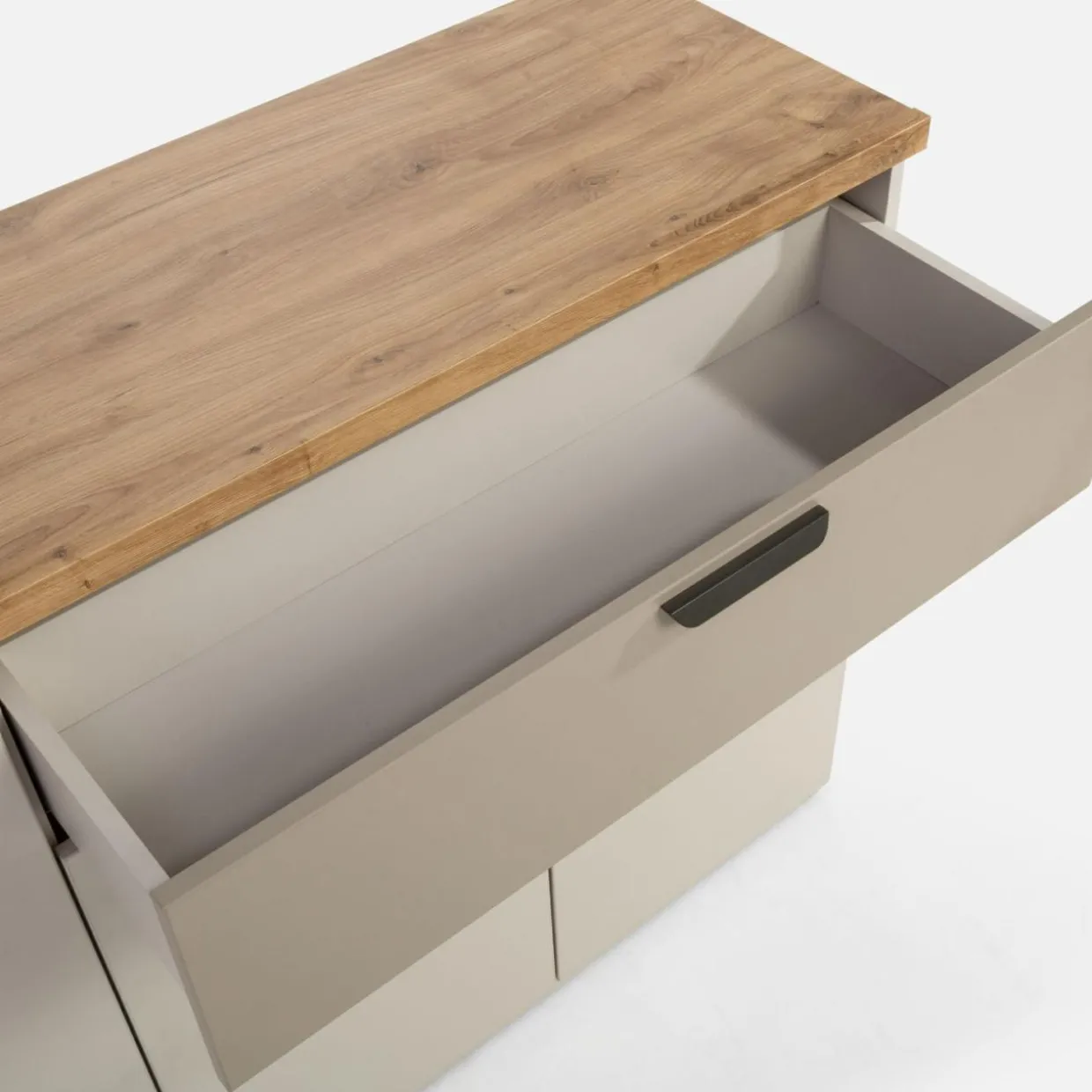 Komoda MAX MODERN sprawdzi się do przechowywania większych przedmiotów — zastawy obiadowej, tekstyliów domowych czy dekoracji.