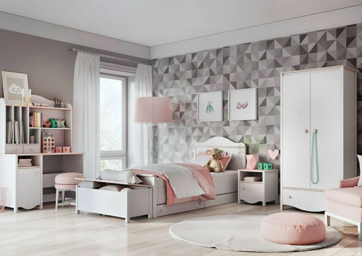 Komodę MIA warto zestawić z pozostałymi meblami z kolekcji. Wprowadzą do aranżacji odrobinę elegancki i dziewczęcego uroku.