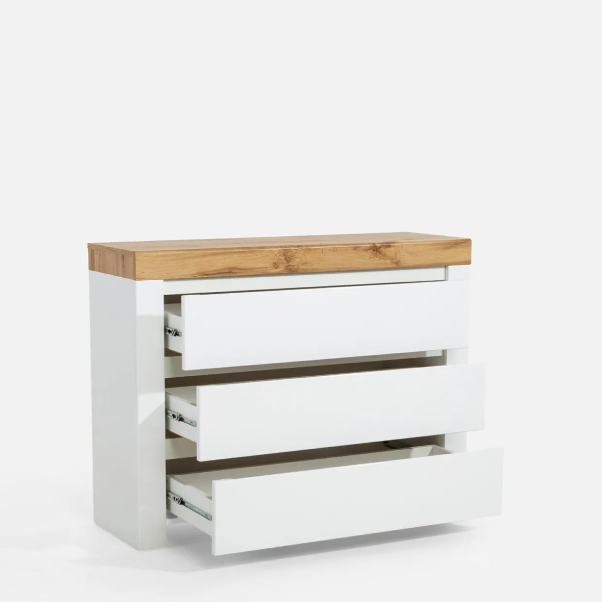 W komodzie TAURUS II schowasz drobną część garderoby — bieliznę, akcesoria do stylizacji i pozostałe przedmioty w pokoju.