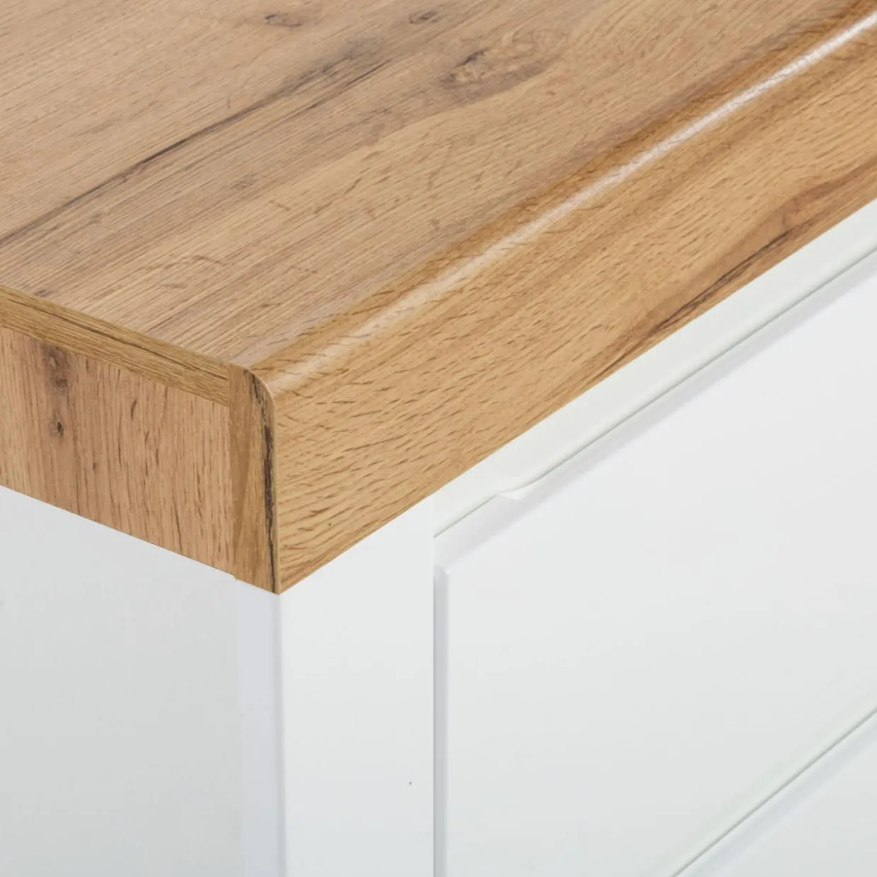 - Elementy w odcieniu dębu wotan posiadają wyczuwalną pod palcami fakturę przypominającą naturalny surowiec. W połączeniu z ciepłym wybarwieniem tworzą przytulną atmosferę.