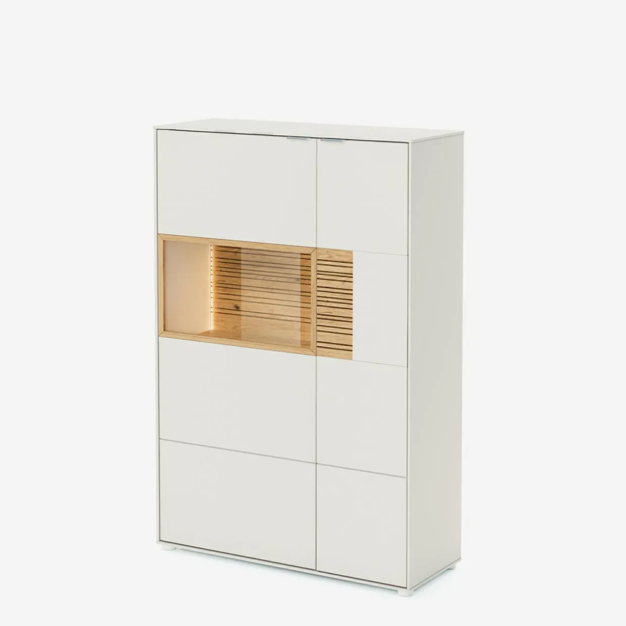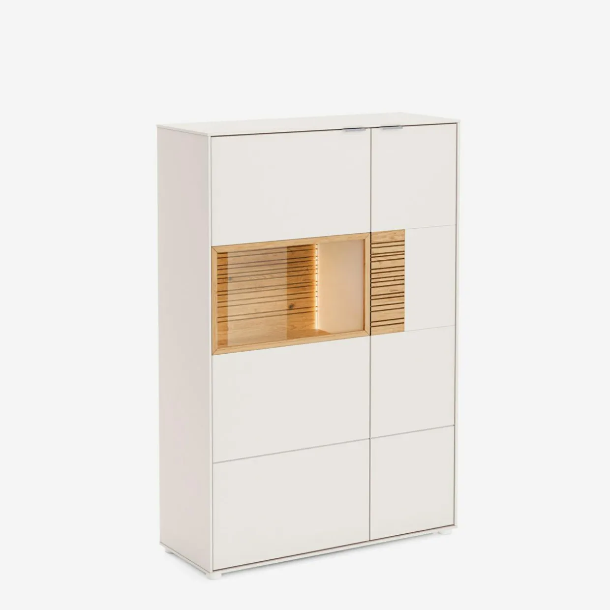 W komodzie PINARO z częściowo przeszklonym frontem wyeksponujesz swoje pamiątki, dekoracje czy naczynia. Resztę schowasz w zabudowanych szafkach.