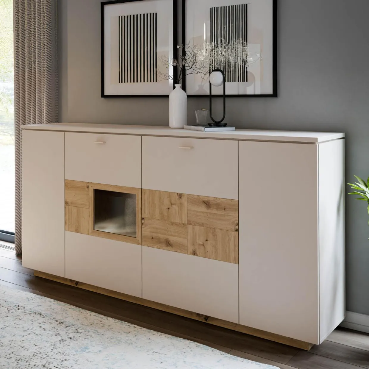 Komoda z witryną LOUOTO + Oświetlenie 1-pkt, z wył, barwa ciepła