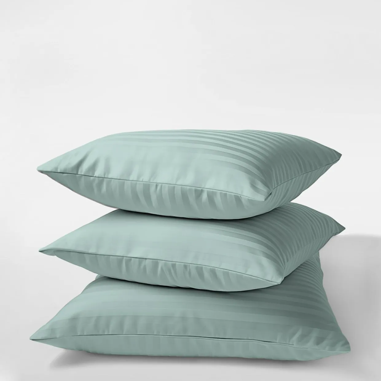 Komplet 2 poszewek na poduszki PURE w miętowym kolorze jest uszyty z miłego i gładkiego adamaszku – naturalna tkanina nadaje się dla wrażliwej skóry.