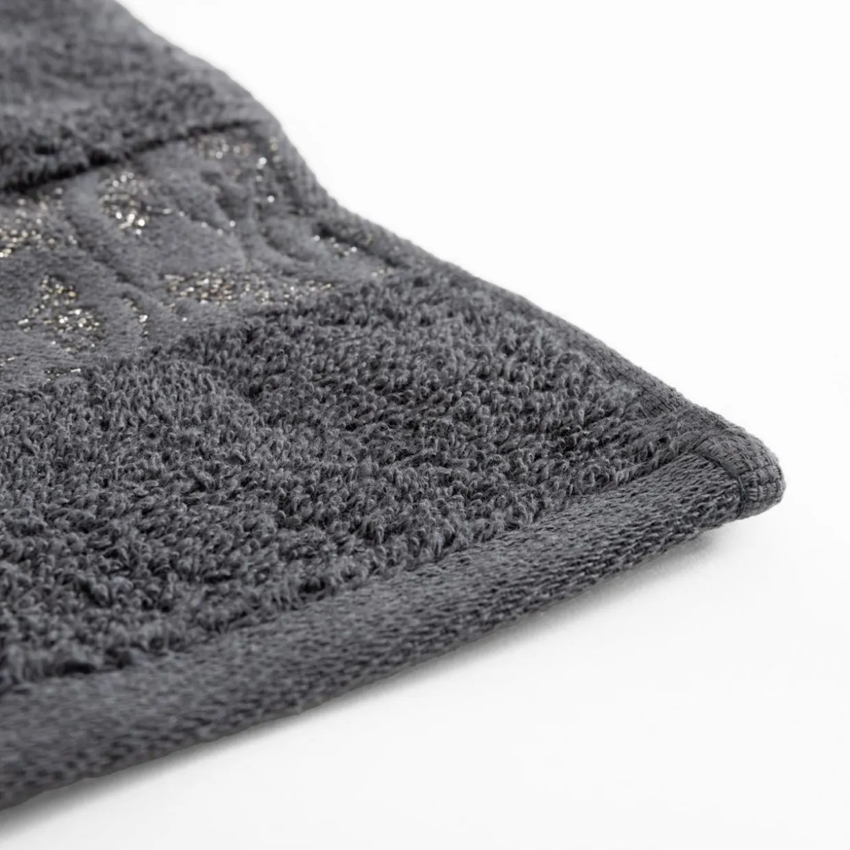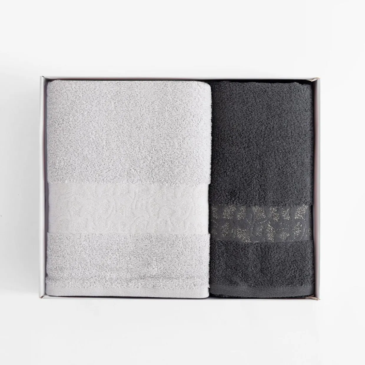 - ręcznik o wymiarach: 50×90 cm, o stalowym kolorze.