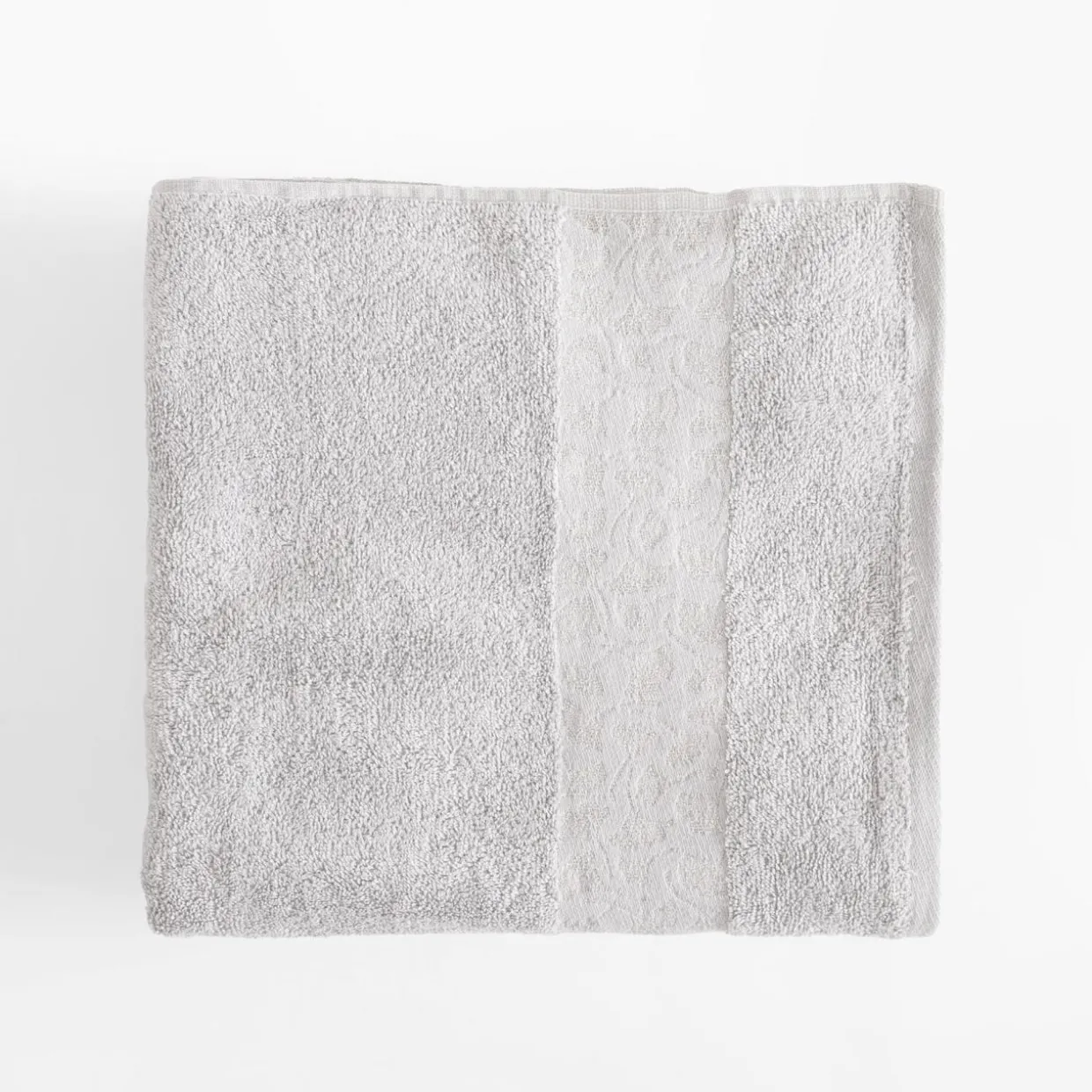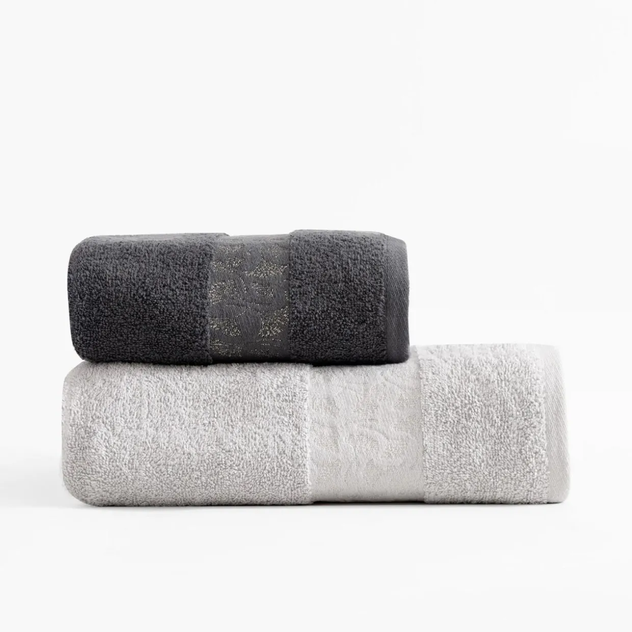 - ręcznik o wymiarach: 70×140 cm, o srebrnym kolorze.
