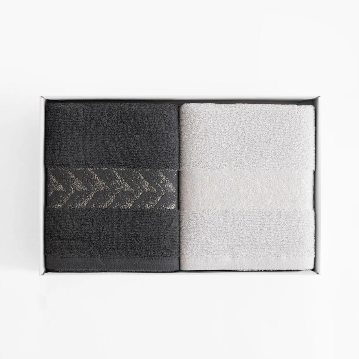 - ręcznik o wymiarach: 50×90 cm, o stalowym kolorze.