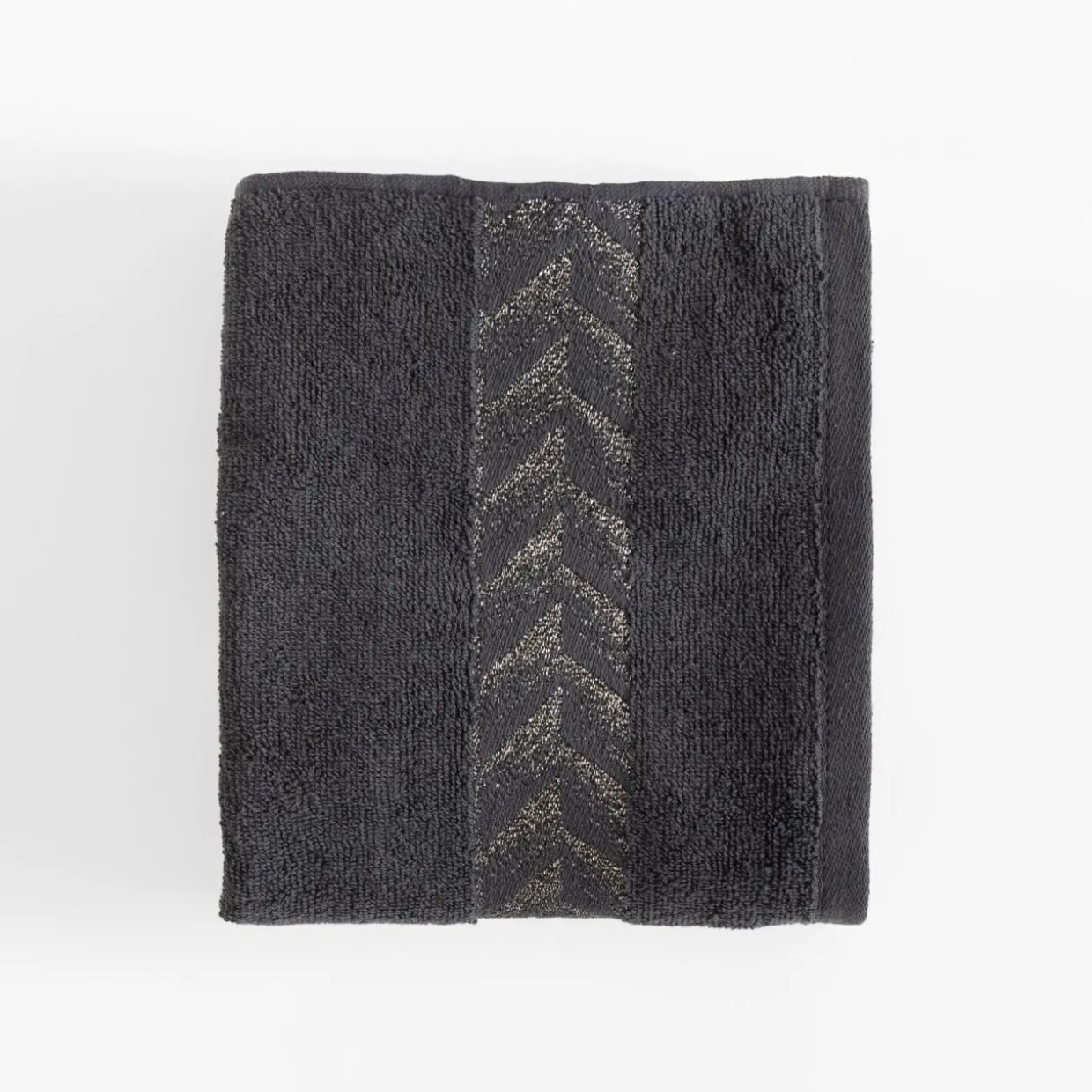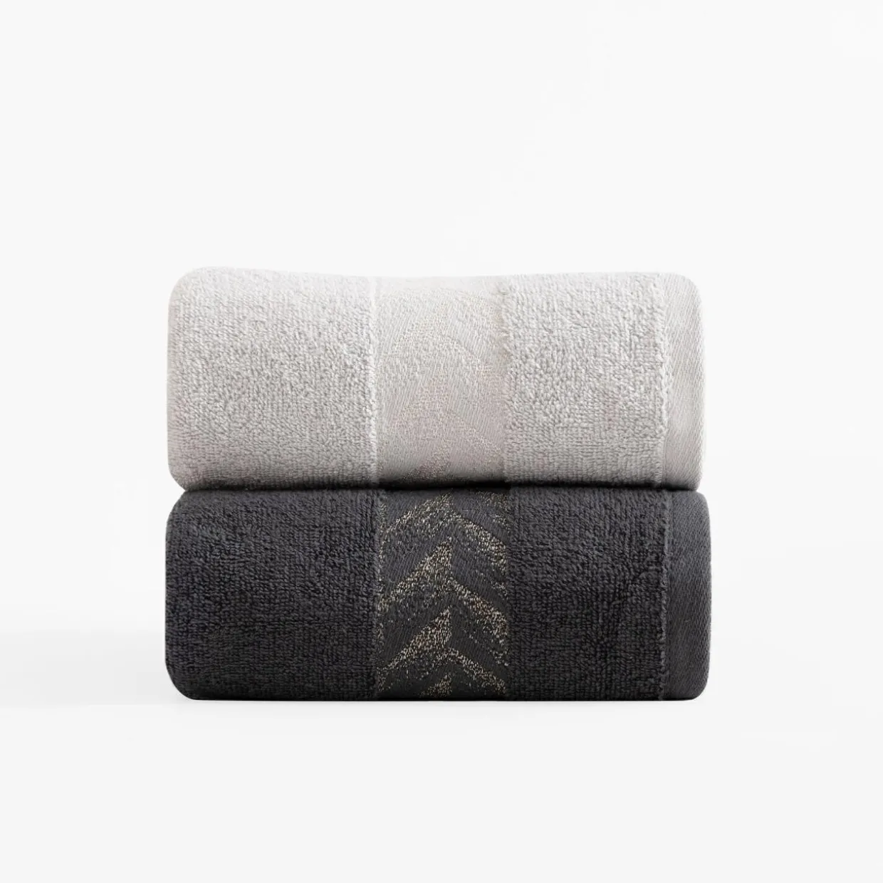 Ręczniki z kolekcji GLOW przyciągną uwagę złotą bordiurą.