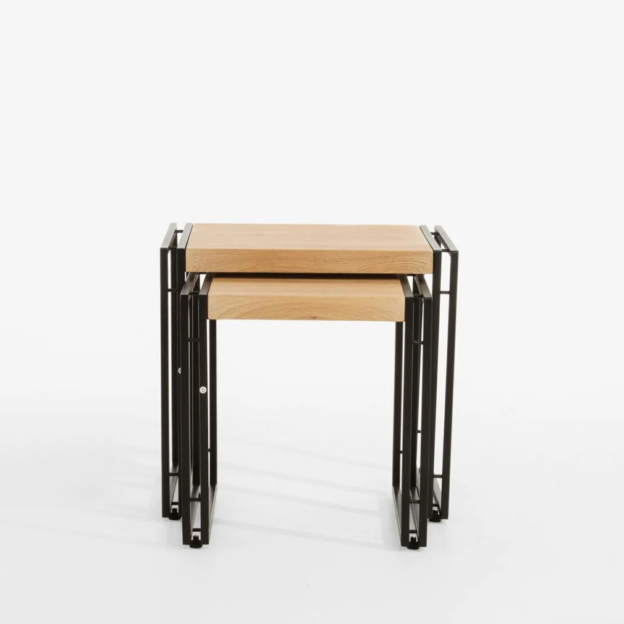 Stoliki możesz sprytnie schować jeden pod drugi, oszczędzając metraż, dlatego komplet sprawdzi się w niewielkich pokojach dziennych i kawalerkach.