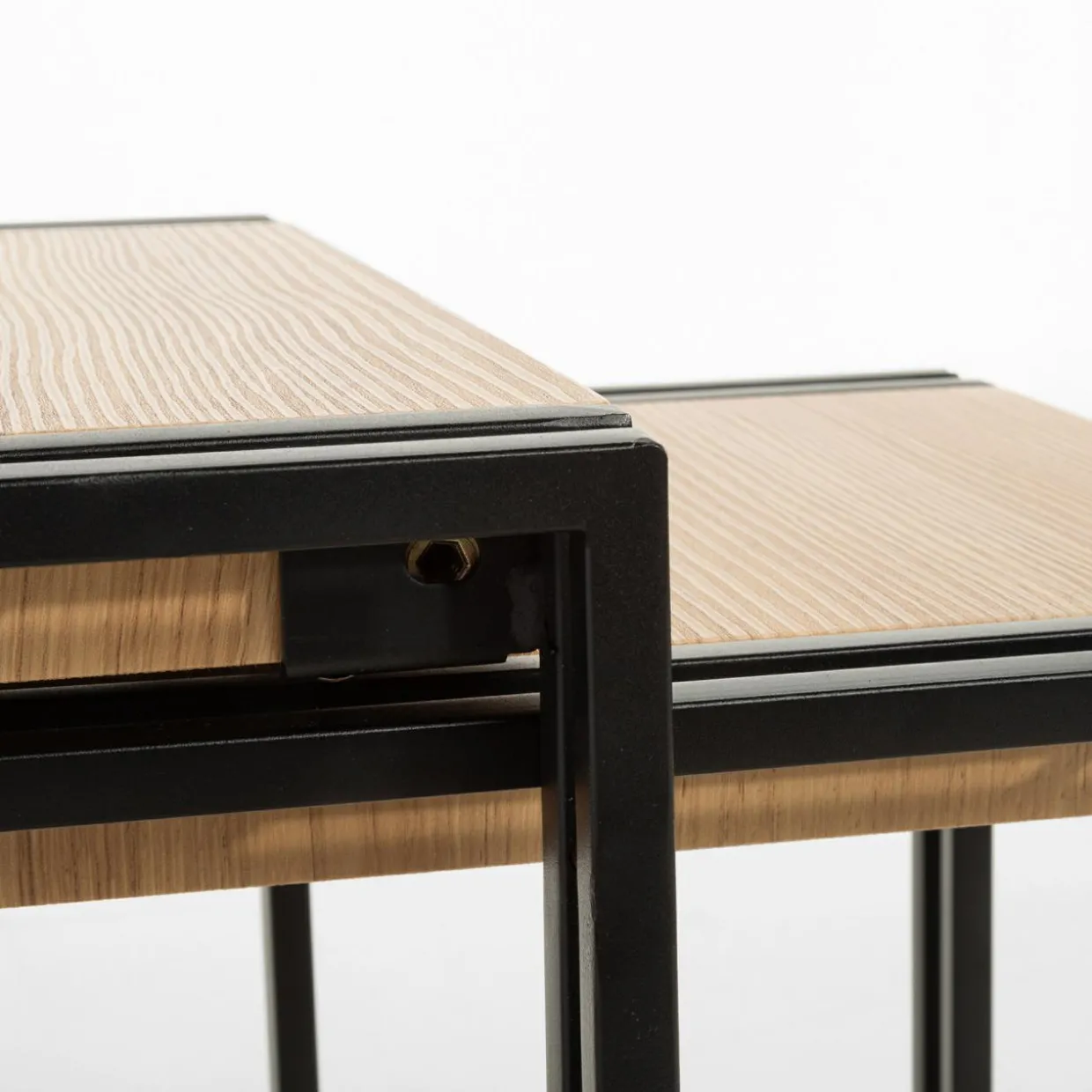 Komplet 2 stolików ORLO wpasuje się w industrialne i nowoczesne klimaty. Jasne barwienie blatu rozjaśni wnętrze. Ciekawe drabinkowe nogi w kształcie płóz będą ozdobą salonu samą w sobie.