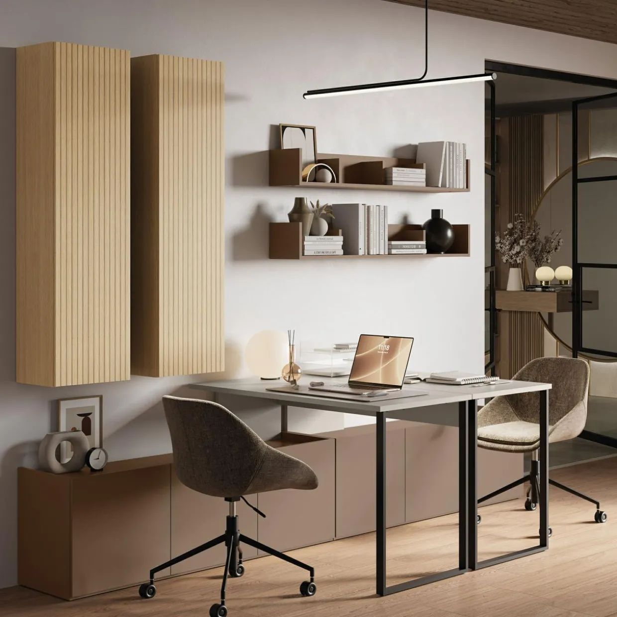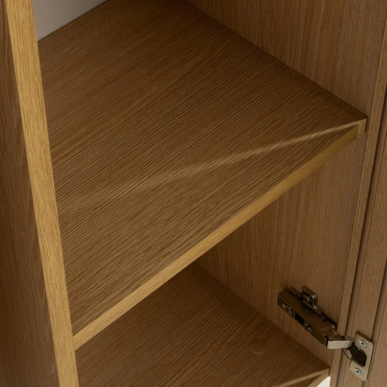 - Szafy i regały posiadają system push to open – wystarczy lekko przycisnąć front, żeby je otworzyć.